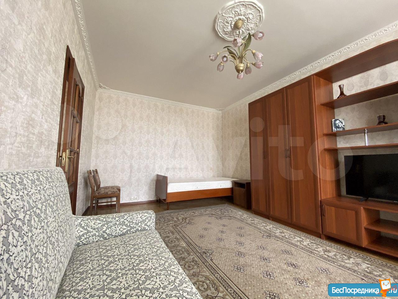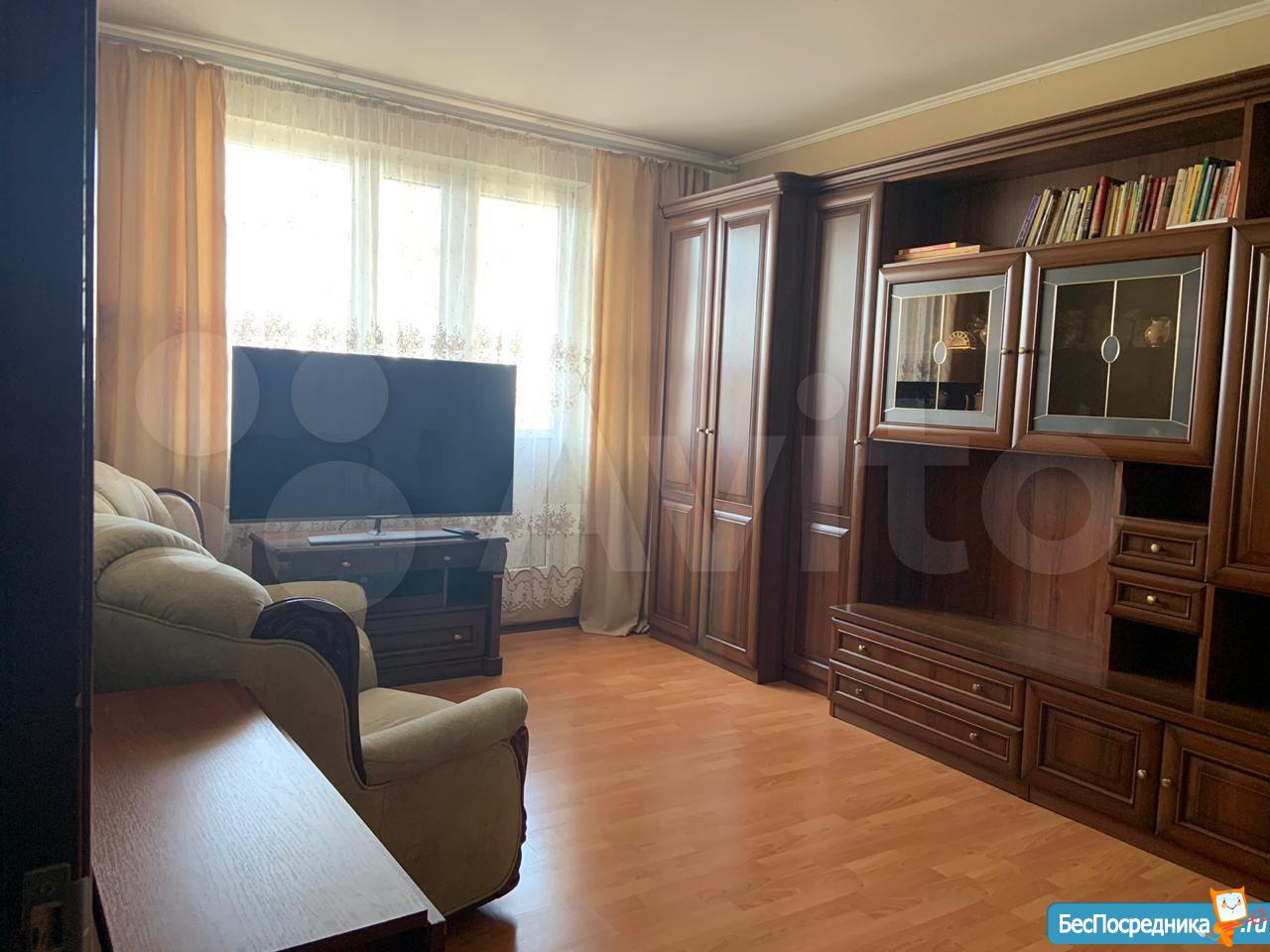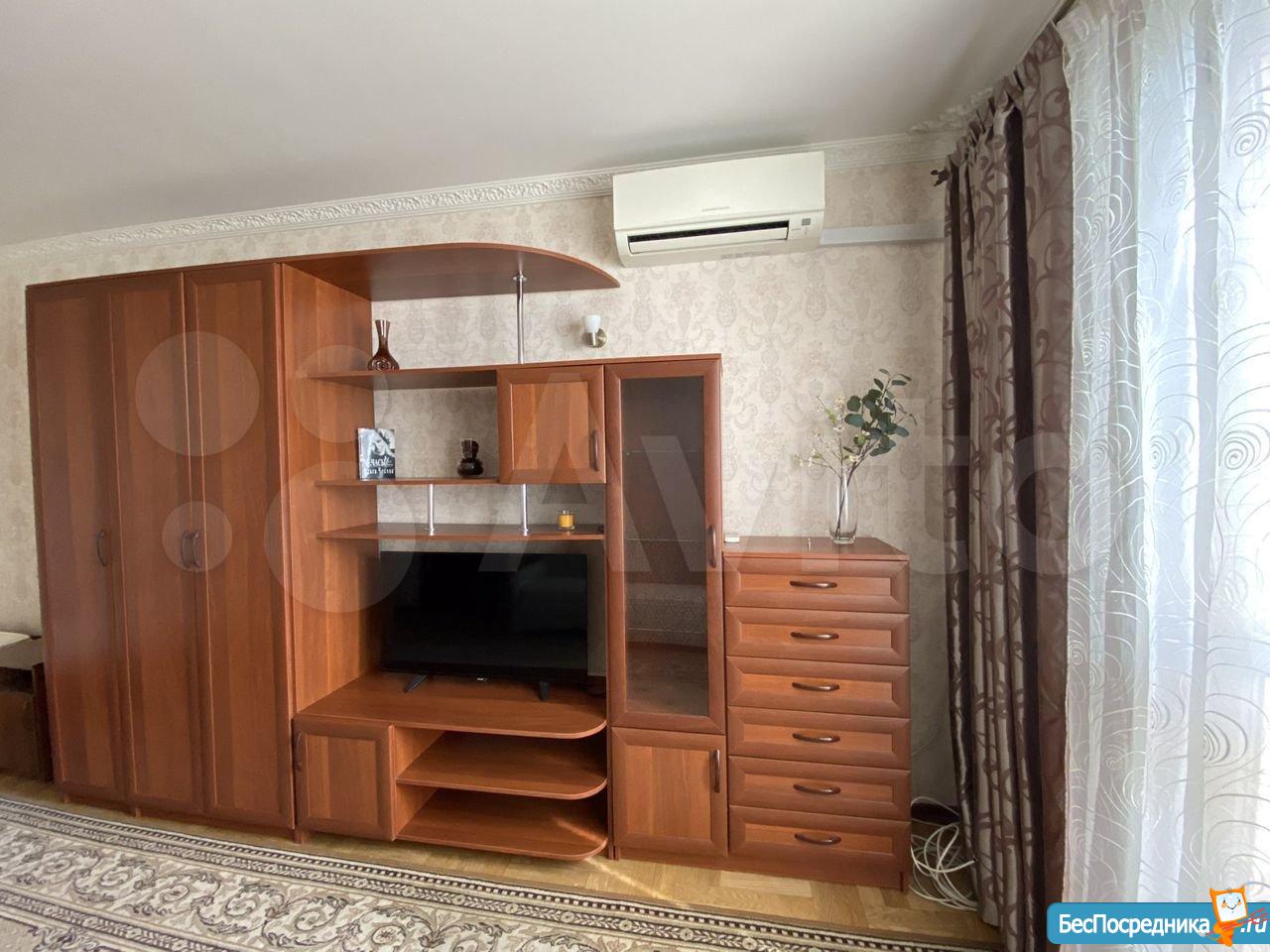 В 3 минутах ходьбы станция метро жулебино. Кухонный гарнитур, стол обеденный, холодильник, ТВ. Санузел совмещенный, стиральная машина автомат. В прихожей шкаф для вещей. В комнате диван, стенка. Балкон не застеклён. на длительный срок.