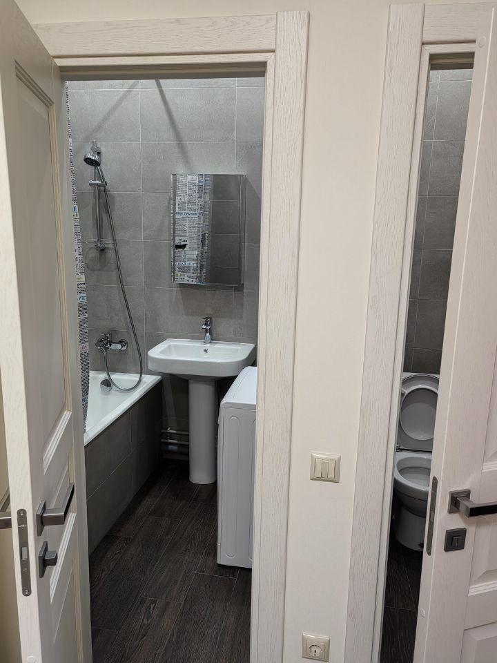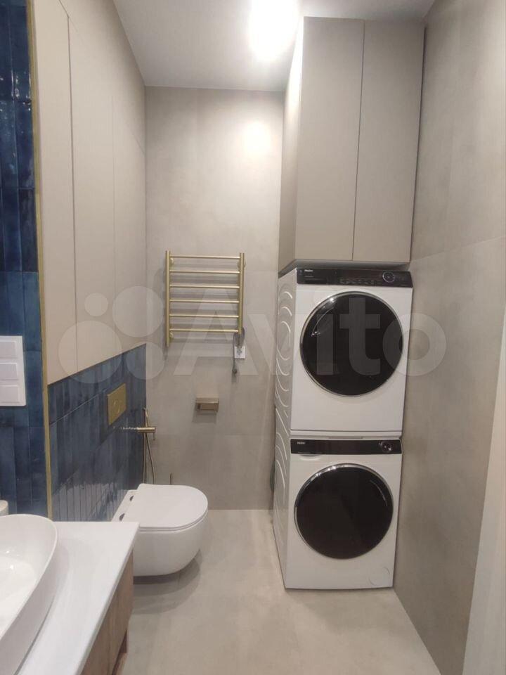В санузле установлены стиральная и сушильная машины, ванной, тропическим душем. Санузел оборудован теплым полом.