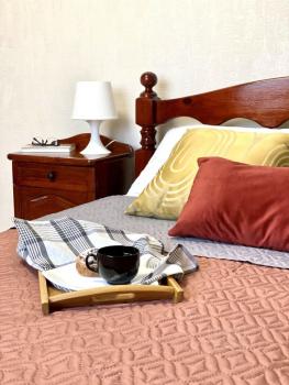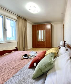 В спальне кровать с новым матрасом, большой шкаф гардеробный и прикроватные тумбы. Атмосферный вид со спального места на город. В гостиной диван со спальным местом, рабочий стол и тумба ТВ. Также дополняют уют ковер и торшер, комната полностью в новой мебели! Телевизор с интерактивным меню и приложениями. Так же имеется кондиционер. Шторы в спальне и гостиной блэкаут новые. Просторный балкон с зоной отдыха и подогревом пола. Кухня с обеденной зоной располагает до 6 персон свободно, стол раскладывается и имеются дополнительные стулья. Техника в наличии: двухдверный холодильник, посудомойка, духовка, свч+гриль и вытяжка. В прихожей большой шкаф и обувница. В коридоре возле спальни дополнительный пенал для хранения.