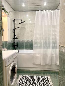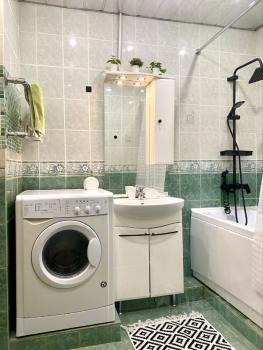 Ванная комната объединенная с туалетом. Ванную и душ установили новые. Имеется стиральная машина с дополнительной функцией сушки и отдельное биде.
