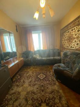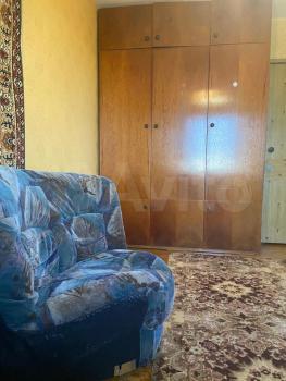 Уютная комната в трехкомнатной квартире. Оборудована раздвижным диваном, кресло, тв и тумба, вместительный шкаф. Установлены пластиковые окна.