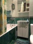 В гостиной установлен удобный угловой диван и вместительный шкаф. Из мебели также имеются шкафы в спальнях. Ванная комната оборудована современной сантехникой и стиральной машиной.