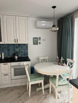 Уютная и стильная студия. Есть выделенная спальня, в ней просторная гардеробная. Кухня совмещена с гостиной. В квартире есть всё, что нужно для комфортной жизни: мебель, посудомоечная и стирао машины, кофемашина, посуда, кондиционер.