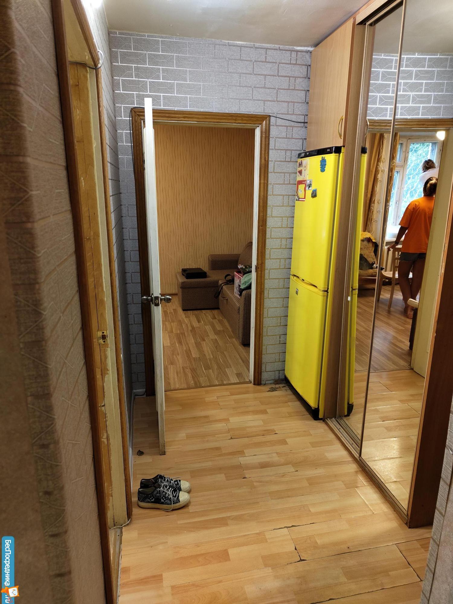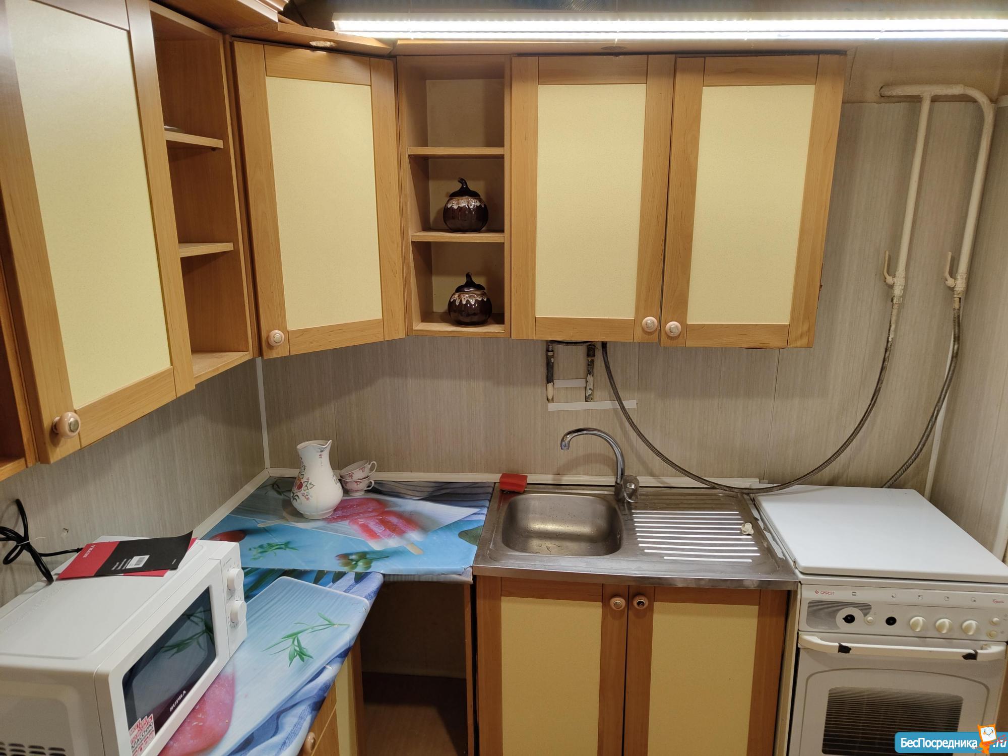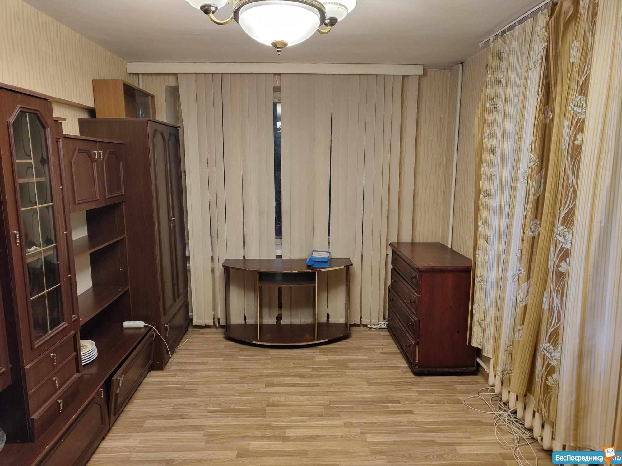 Квартира без ремонта, но в ней есть вся необходимая мебель на кухне и в комнате, а также оборудование: холодильник, телевизор.