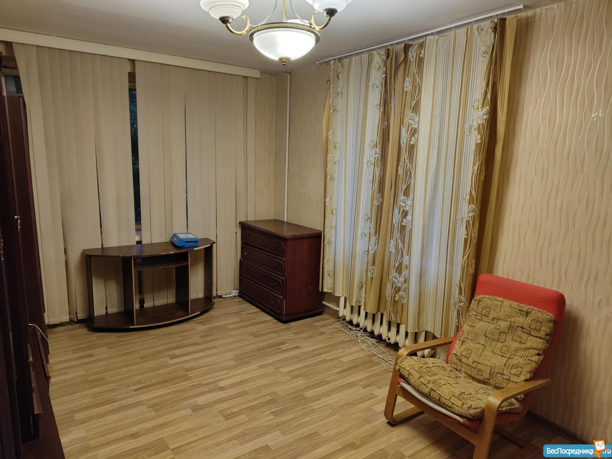 Двухкомнатная квартира в кирпичном доме в удовлетворительном состоянии на 1м этаже, комнаты изолированные, до метро 20 минут пешком или на транспорте 5 минут, до 3х человек, стиральная машина, тв, мебель