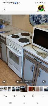холодильник, плита, микроволновка, стиральная машина, телевизор.