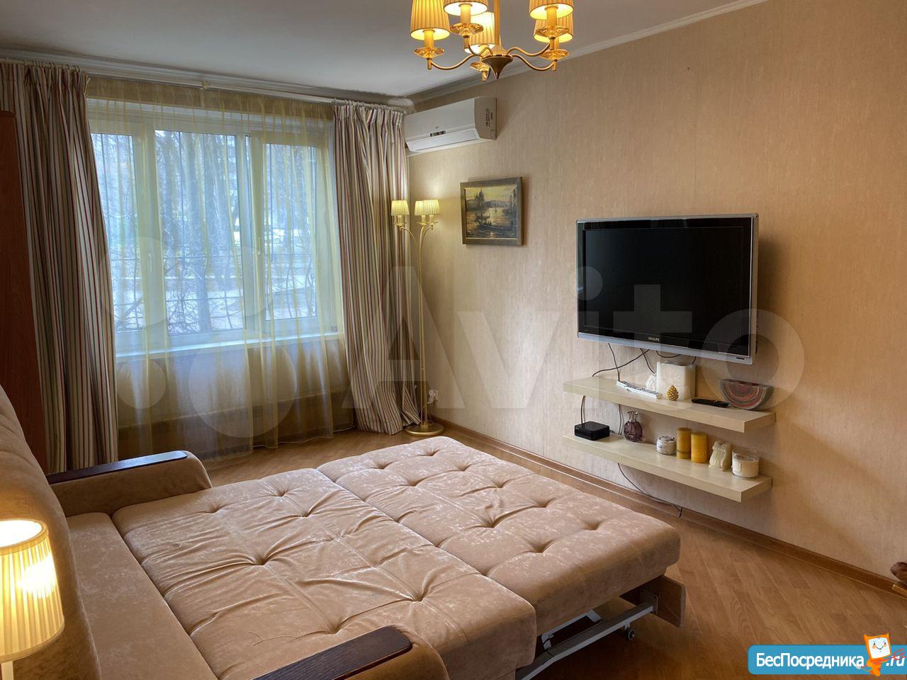 В квapтире два paскладных дивана, двa вмеcтительныx шкафa, комоды, три телевизора, пылесос, стиральная машина, холодильник, чайник, утюг, гладильная доска, сушилка (все новое).