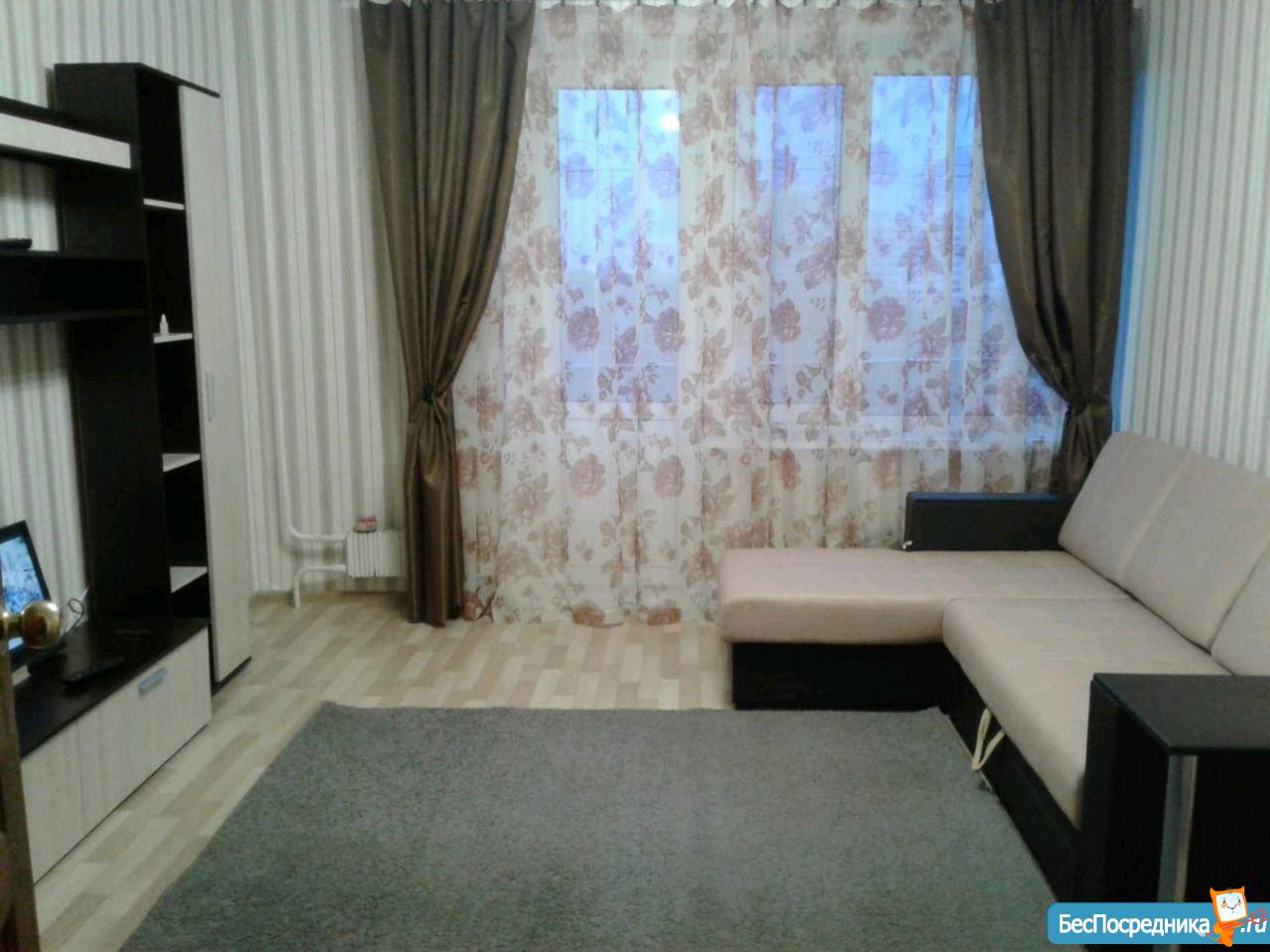 Аккуратная, уютная квартира. Изолированные комнаты (диваны, мебельная стенка), обустроенная прихожая, кухня 8кв.м с кухонным гарнитуром, имеются стиральная машина, холодильник, телевизор, телефон, wi-fi.