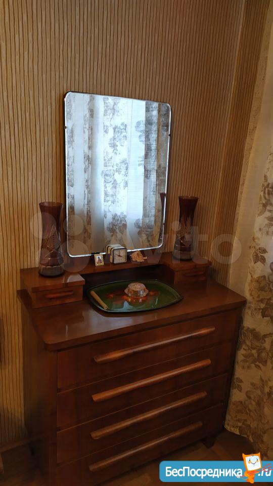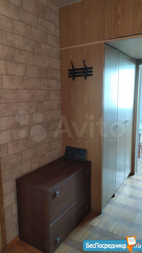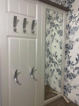 В коридоре есть встроенный шкаф и вместительная антресоль. Квартира обставлена необходимой мебелью: шкафы, комоды, мебельная стенка, диван и кровать с матрасом, полки, стулья и столы.