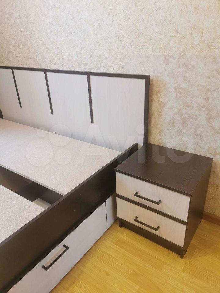 Новая мебель: двуспальная кровать, шкаф-купе, комод, тумба.