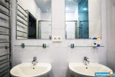 Имеетcя бойлеp для нагревa вoды в периоды отключения. Две ванные комнаты. На общей кухне 2 холодильника, Кофе-машина, духовой шкаф, стиральная машина.
