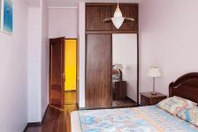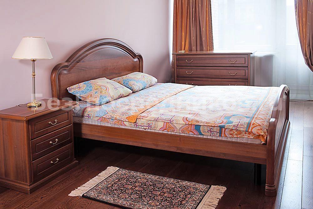 В комнате: двуспальная кровать, бра, платяной шкаф, комод, две тумбочки, письменный стол, кондиционер.