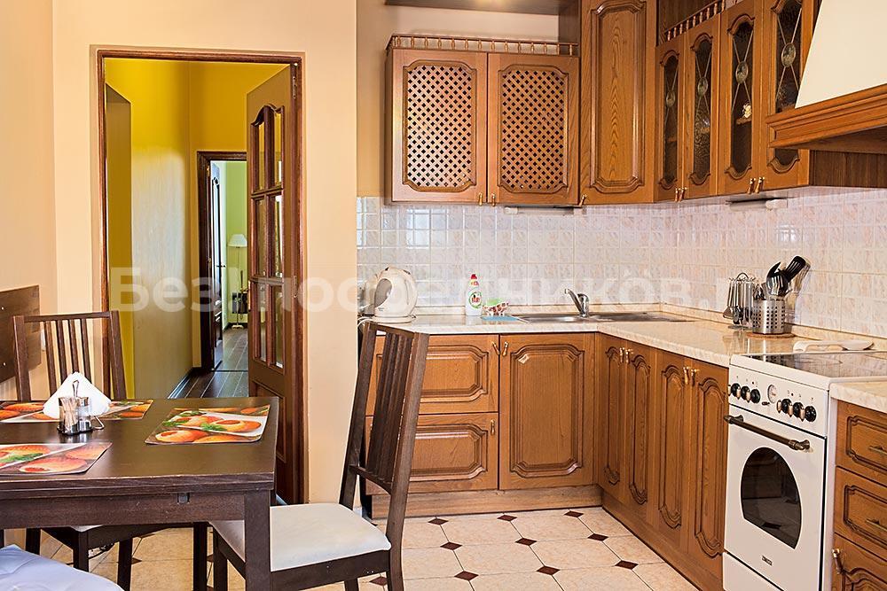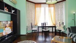 Комнаты изолированные, высокие потолки, холл, санузел раздельный, окна гостиной и кухни выходят на Тверскую улицу, окна спален- в тихий двор. Спальные места 2+2+2+в одной из спален есть детская кроватка. В квартире имеется все необходимое: мебель, посуда, интернет, кабельное ТВ, телевизор, телефон, кондиционер, бытовая техника, бойлер, 2 балкона. В доме вахтер, камеры видео наблюдения, продуктовый магазин, банк, аптека, кафе-бар.