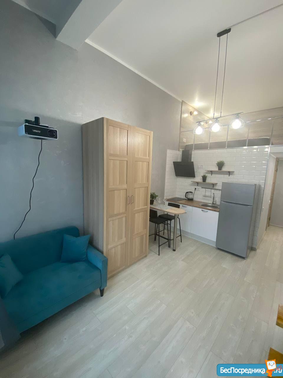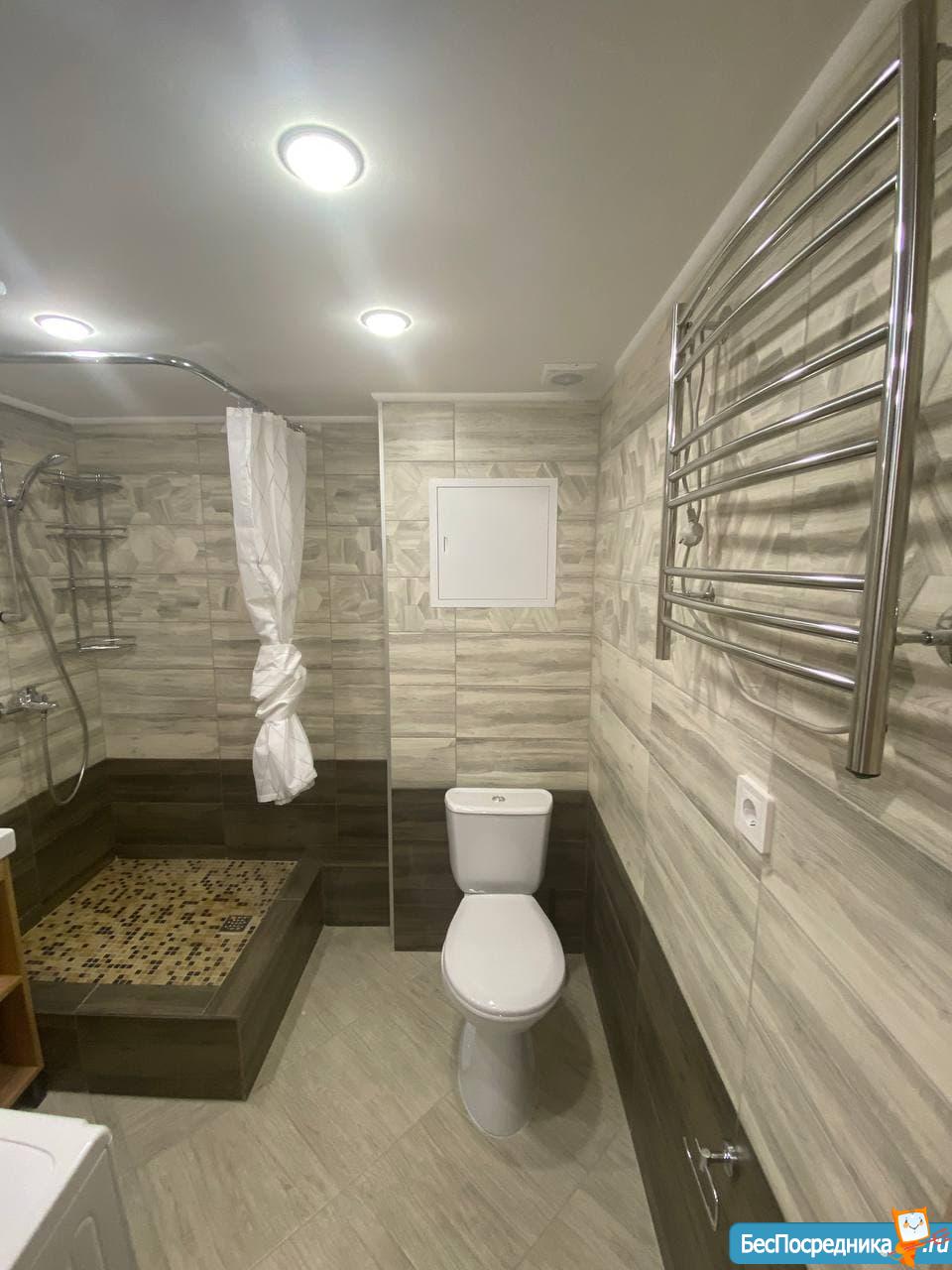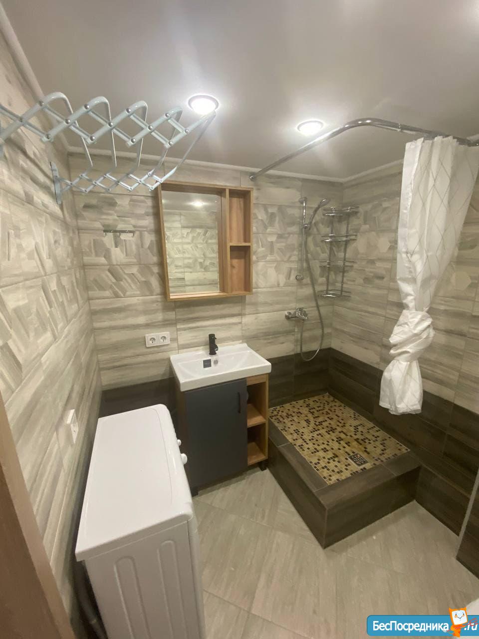Красивый, стильный ремонт, всё новое: кухня, чайник, стиральная машина, душевая, с/у, двуспальный матрас, диван, холодильник, проектор.
