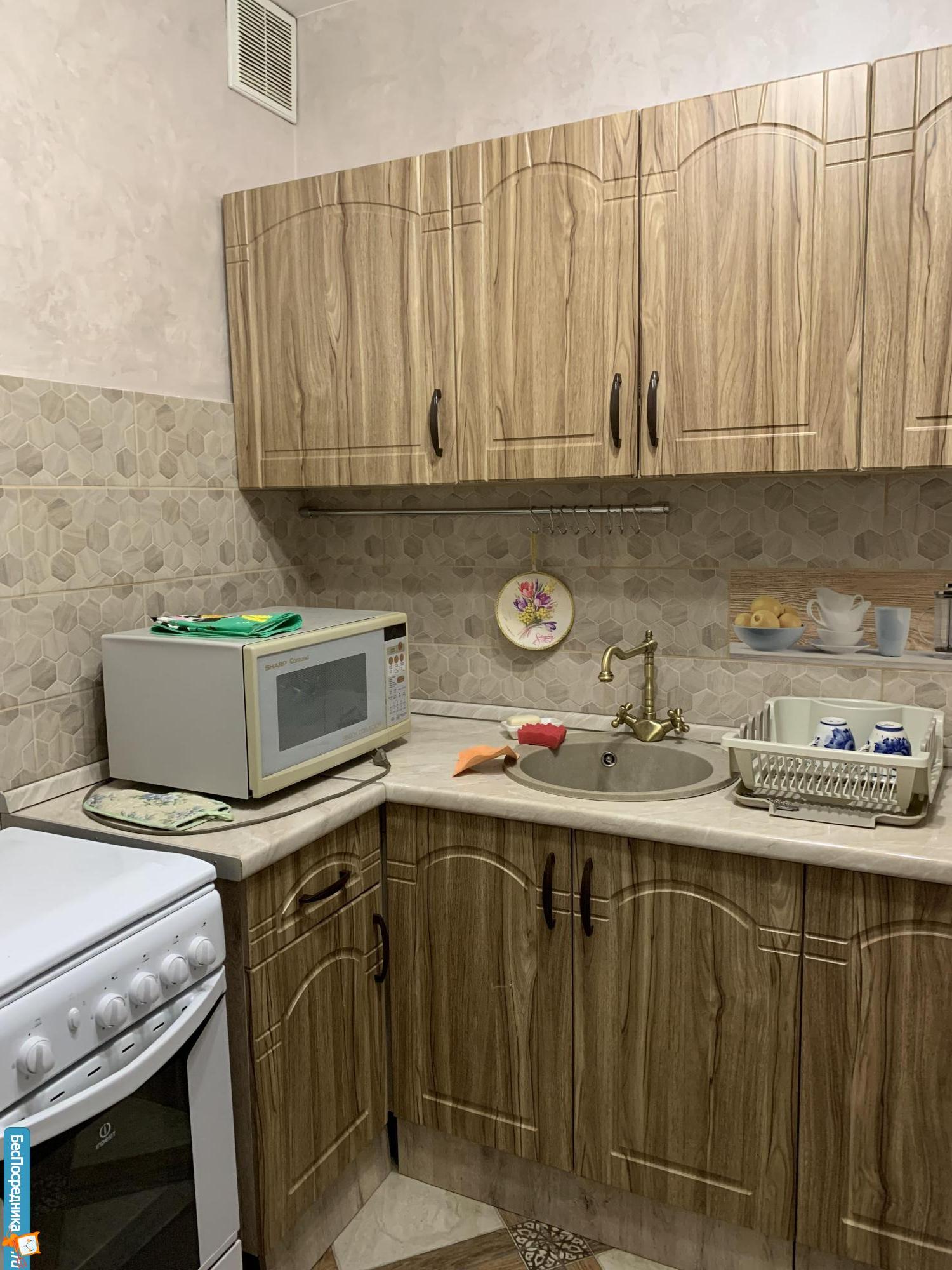 В квартире есть всё необходимое: wi-fi, стиральная машина, микроволновая печь, пылесос, посуда и т.д. В комнате большая кровать и шкаф.