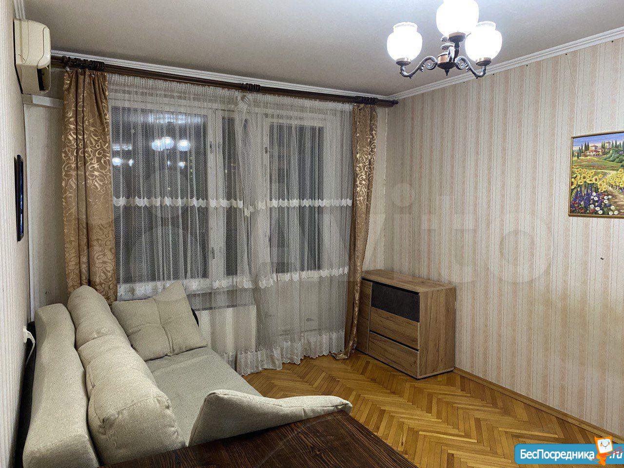Гражданам РФ на длительный срок сдаётся 2-х комнатная квартира. Я-собственник, без комиссии. Первая комната- двухспальная кровать и большой шкаф, вторая комната - раскладной диван, зеркальный узкий шкаф, стол, комод. 40 000 + счетчики. Есть: холодильник, стиральная машина, свч, кондиционер, пылесос. Нет: телевизор, посудомоечная машина, утюг, фен. Агентов просьба не беспокоить.