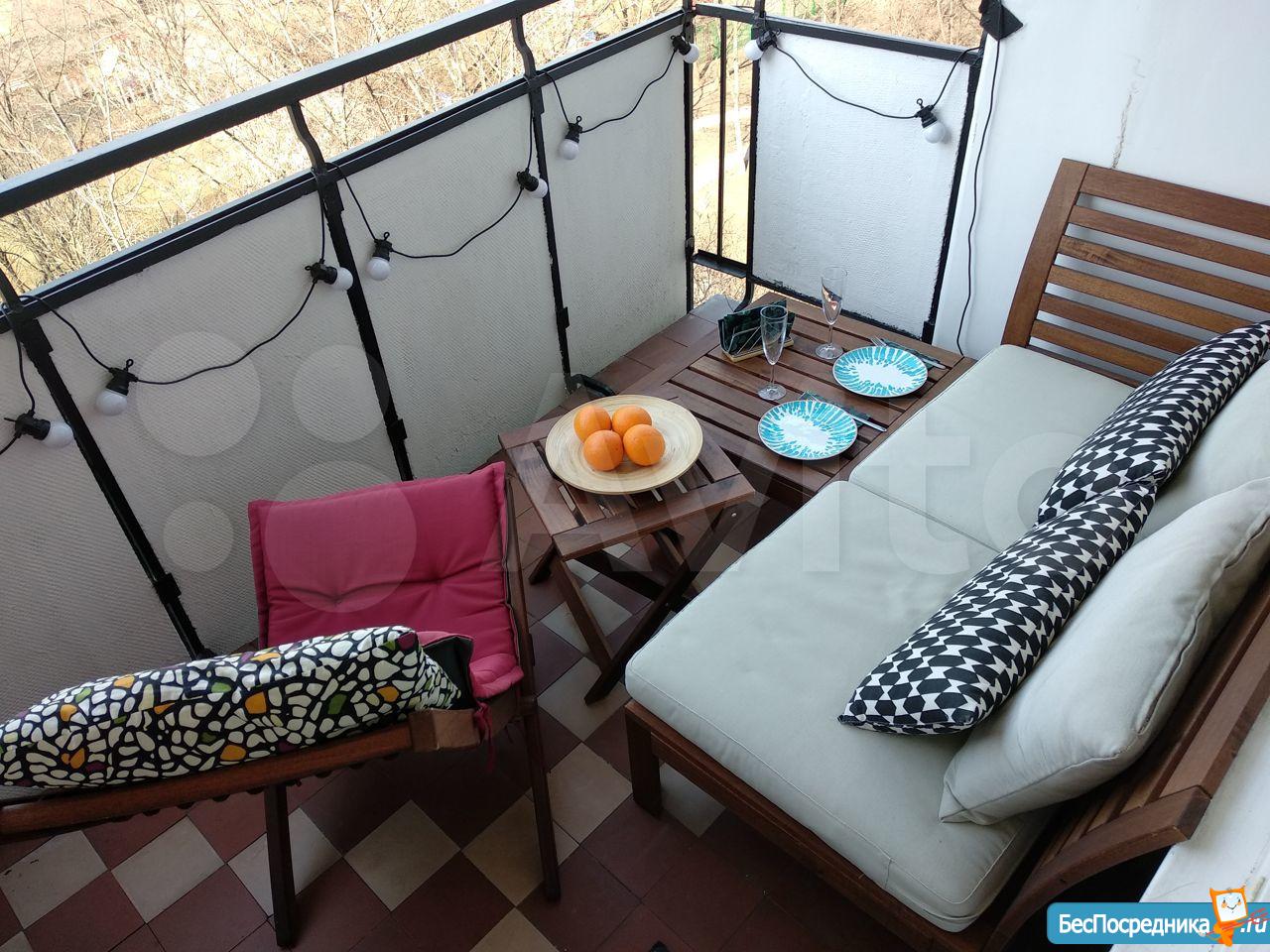 - большой балкон c садовой мебелью;