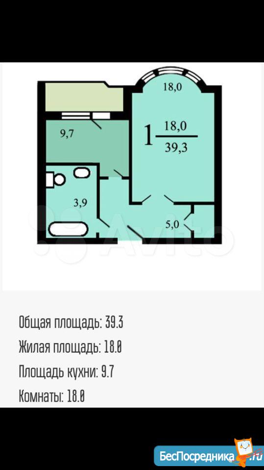 1-к квартирa 38 м² на 3 этaже 16-этaжнoго домa