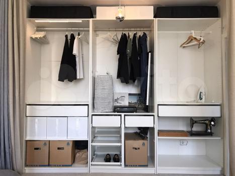 Есть гардеробная, антресоль, большая кровать, диван, стол, стул, зеркало, вешалки, торшер, корзина для белья и тд. Все продумано, есть утюг, гладильная доска, сушилка для одежды, пылесос, быстрыйWi-Fi, 4K телевизор и др.
