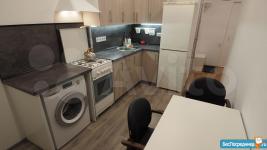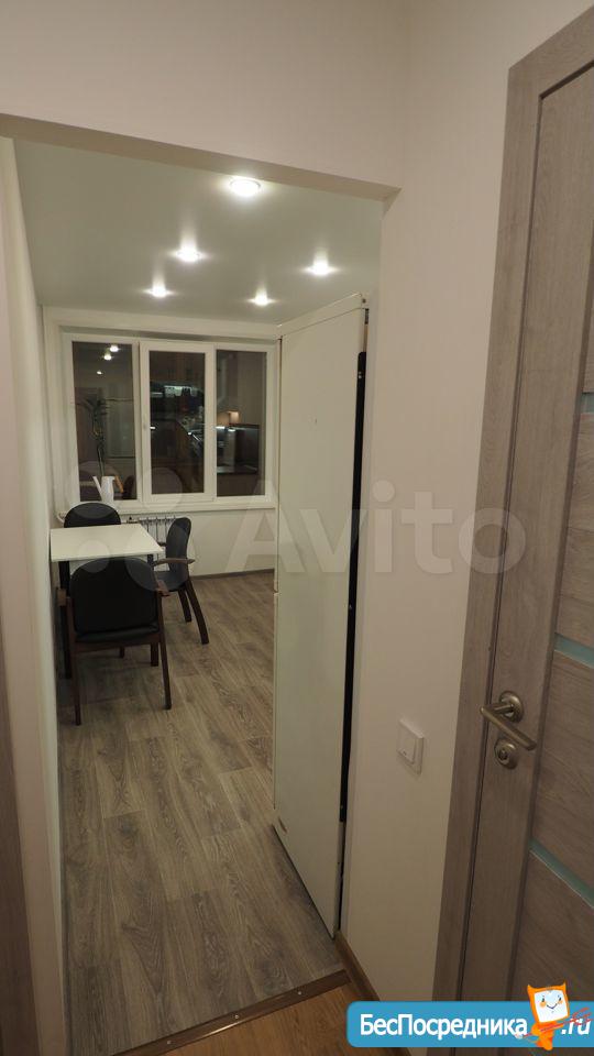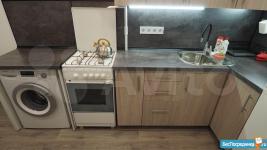 Площадь 36 м, кв +6,5 м застекленная уютная лоджия, отделанная деревом. На лоджии есть кронштейны для хранения велосипедов. Санузел совмещенный, оборудован душевой кабиной. Есть стиральная машина, холодильник, духовка, газовая варочная, фильтр для питьевой воды. Из мебели: раскладной диван на кухне, стол. В комнате: платяной шкаф, стеллаж и кровать и уютные пуфы. Есть возможность оборудовать рабочее место(есть стол в разобранном виде). Установлен экран для проектора.