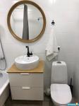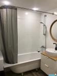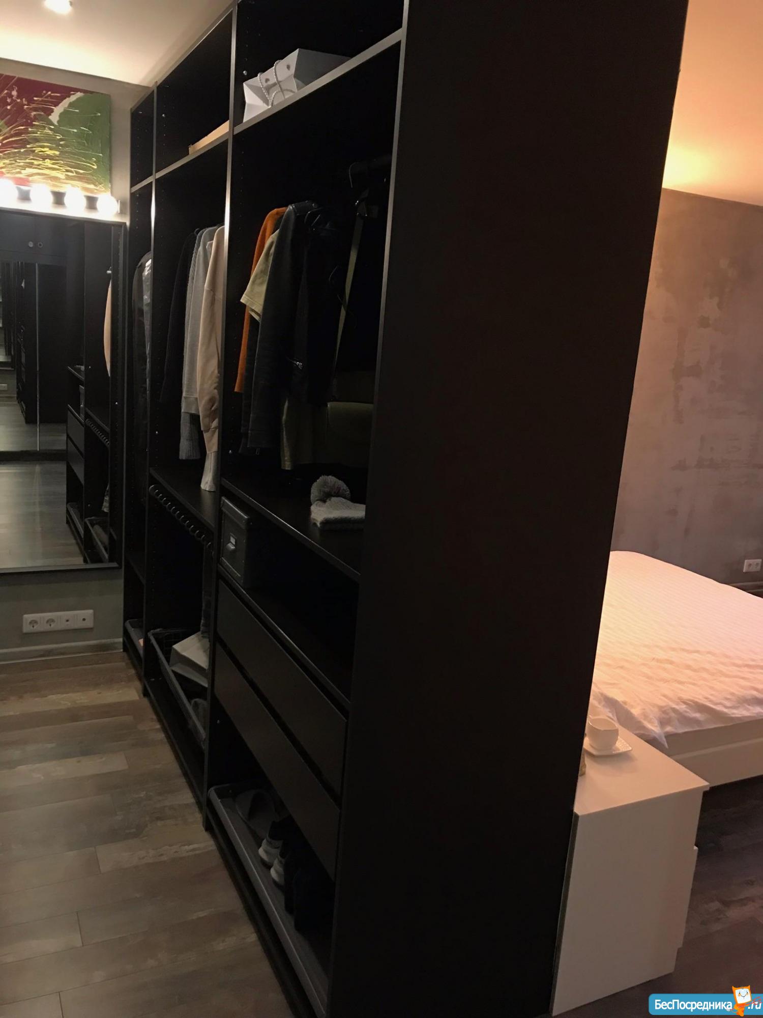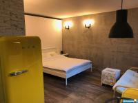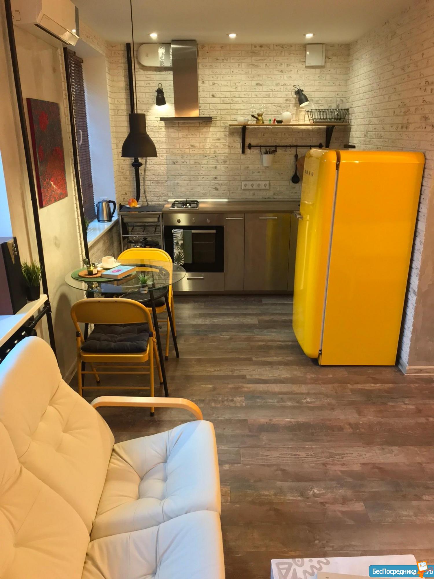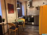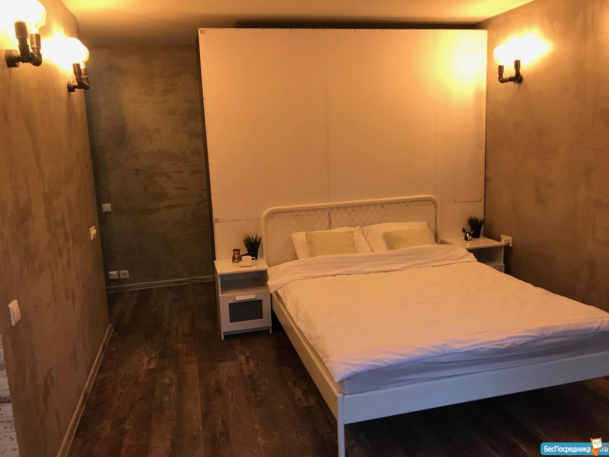 B квapтиpe выполнен дизайнерский евроремонт в стиле Лофт. Просторная комната с кроватью (новый матрас 160х200) и кожаным диваном. Вместительный шкаф для вещей.