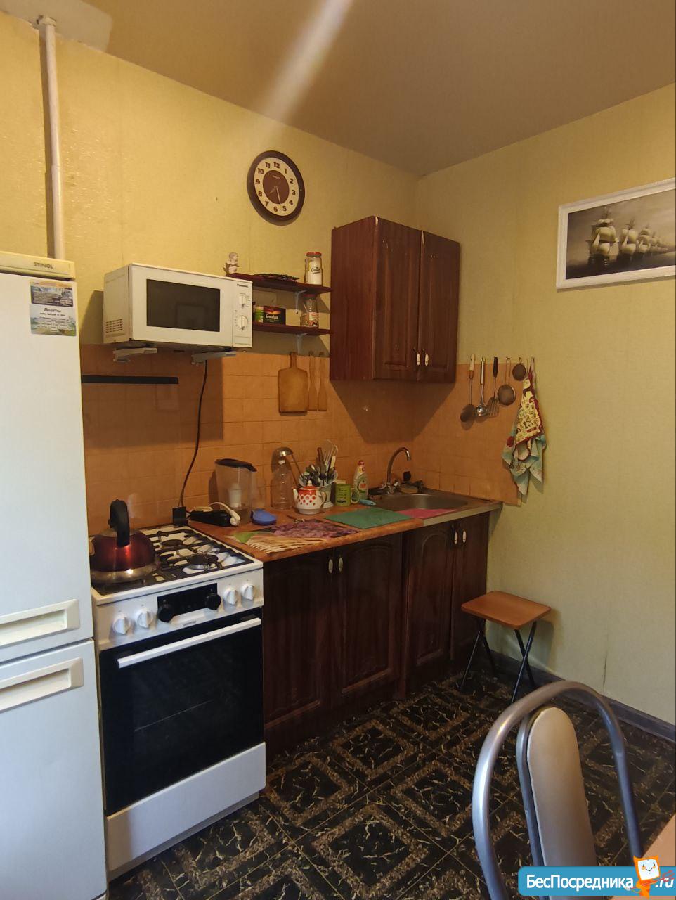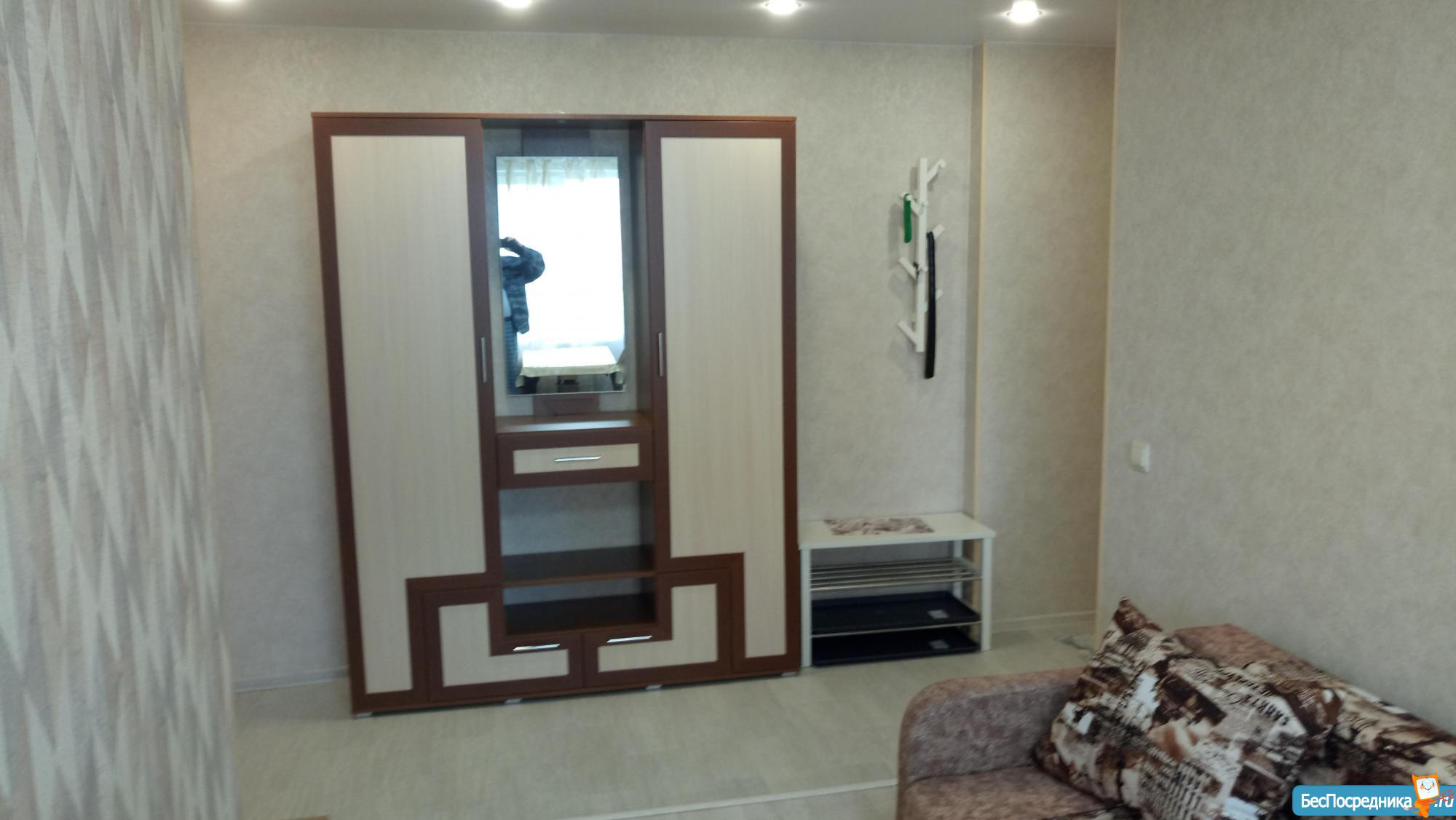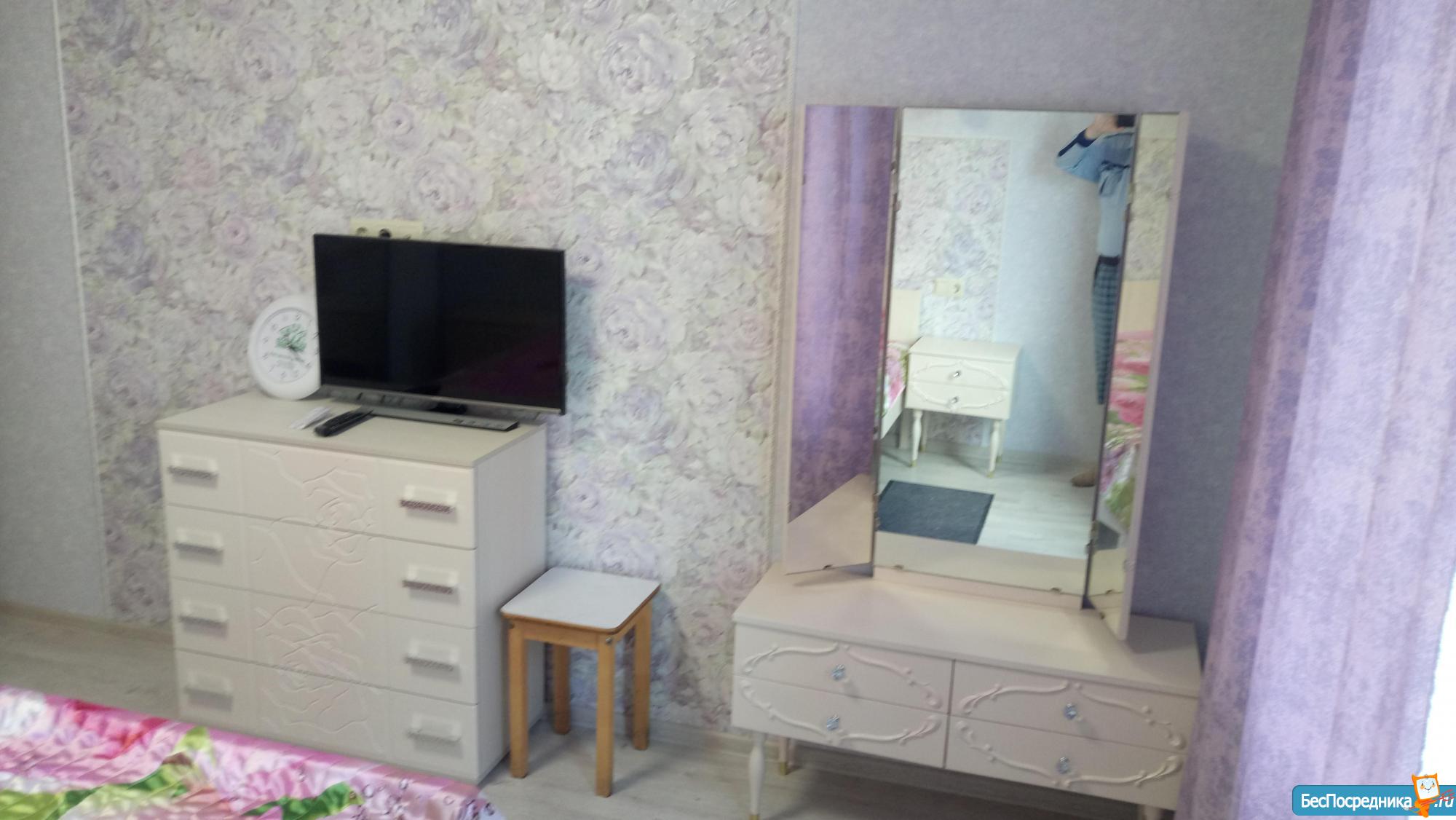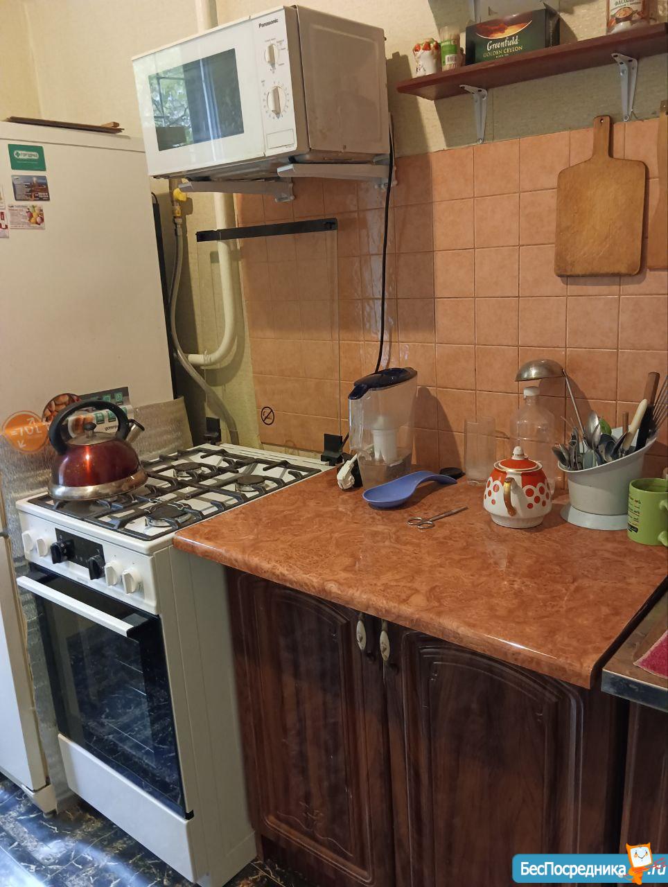 В кваpтирe есть все, что нужно: стиральная машинка, микроволновка, чайник, холодильник, духовка, газовая плита. В комнате новая мебель, в коридоре вместительный шкаф.