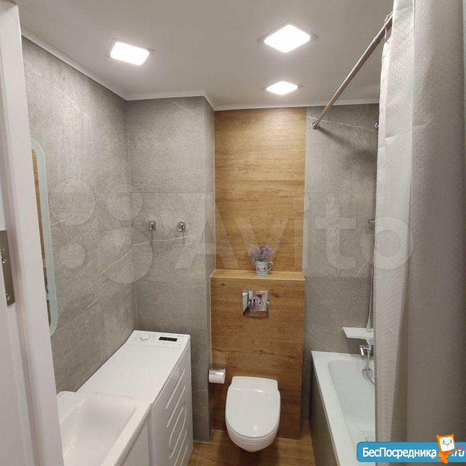 Санузел: совмещенный, оборудован стиральной машиной и современной сантехникой.