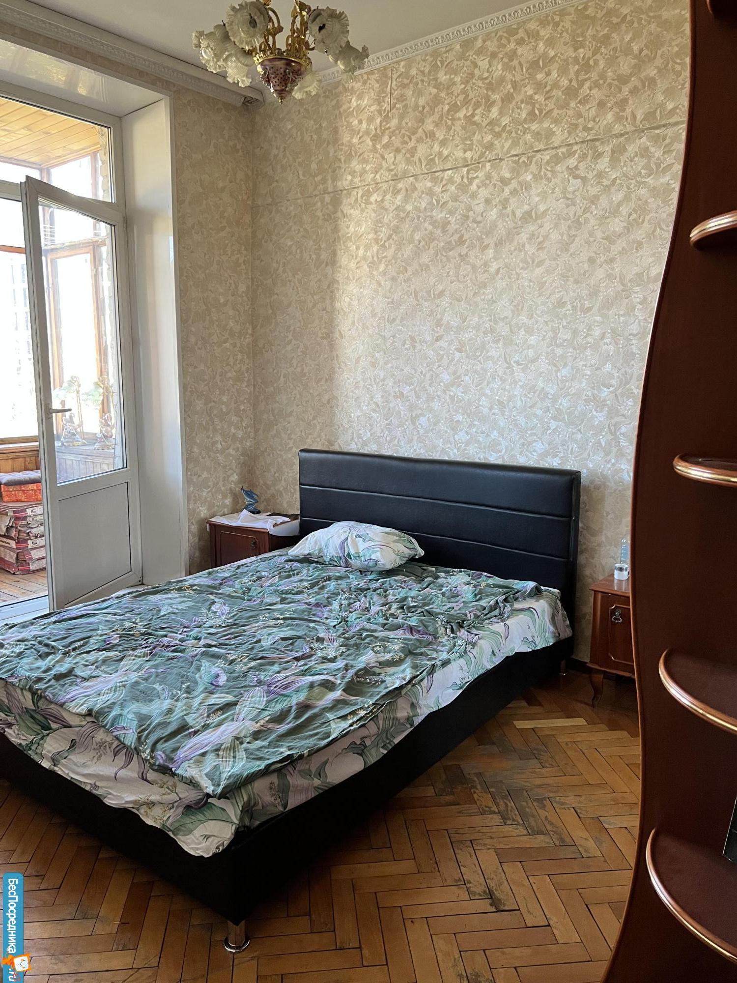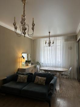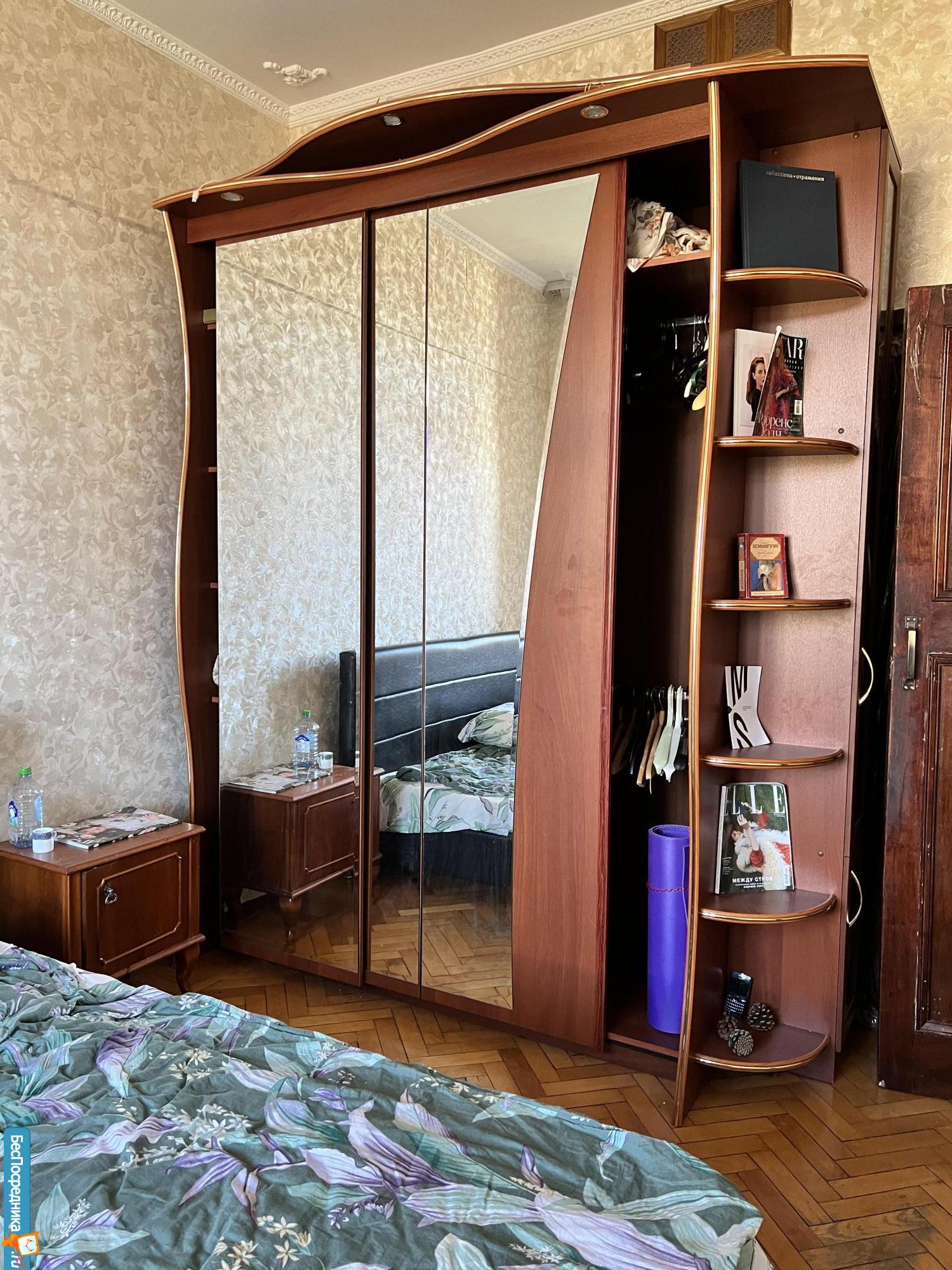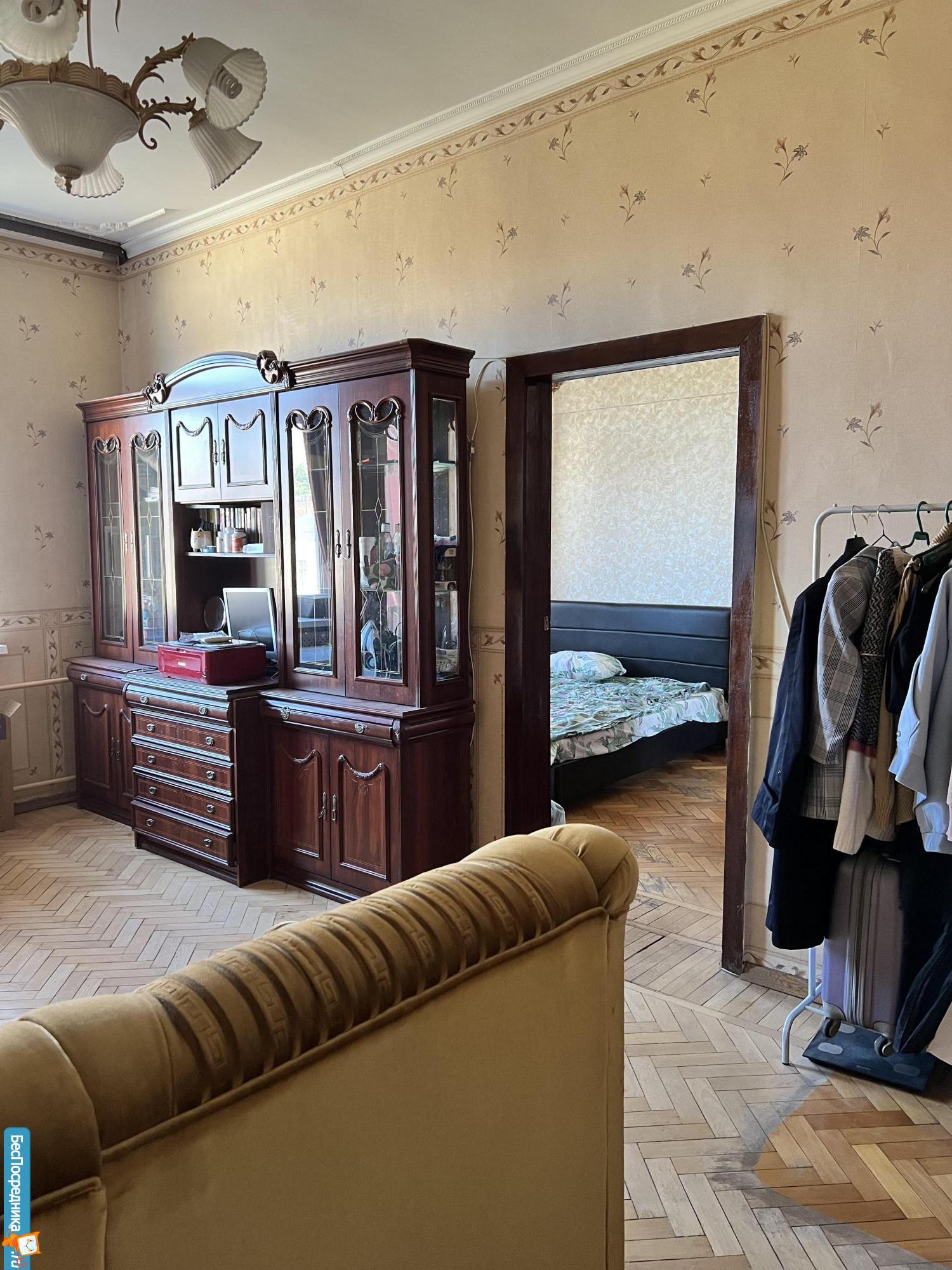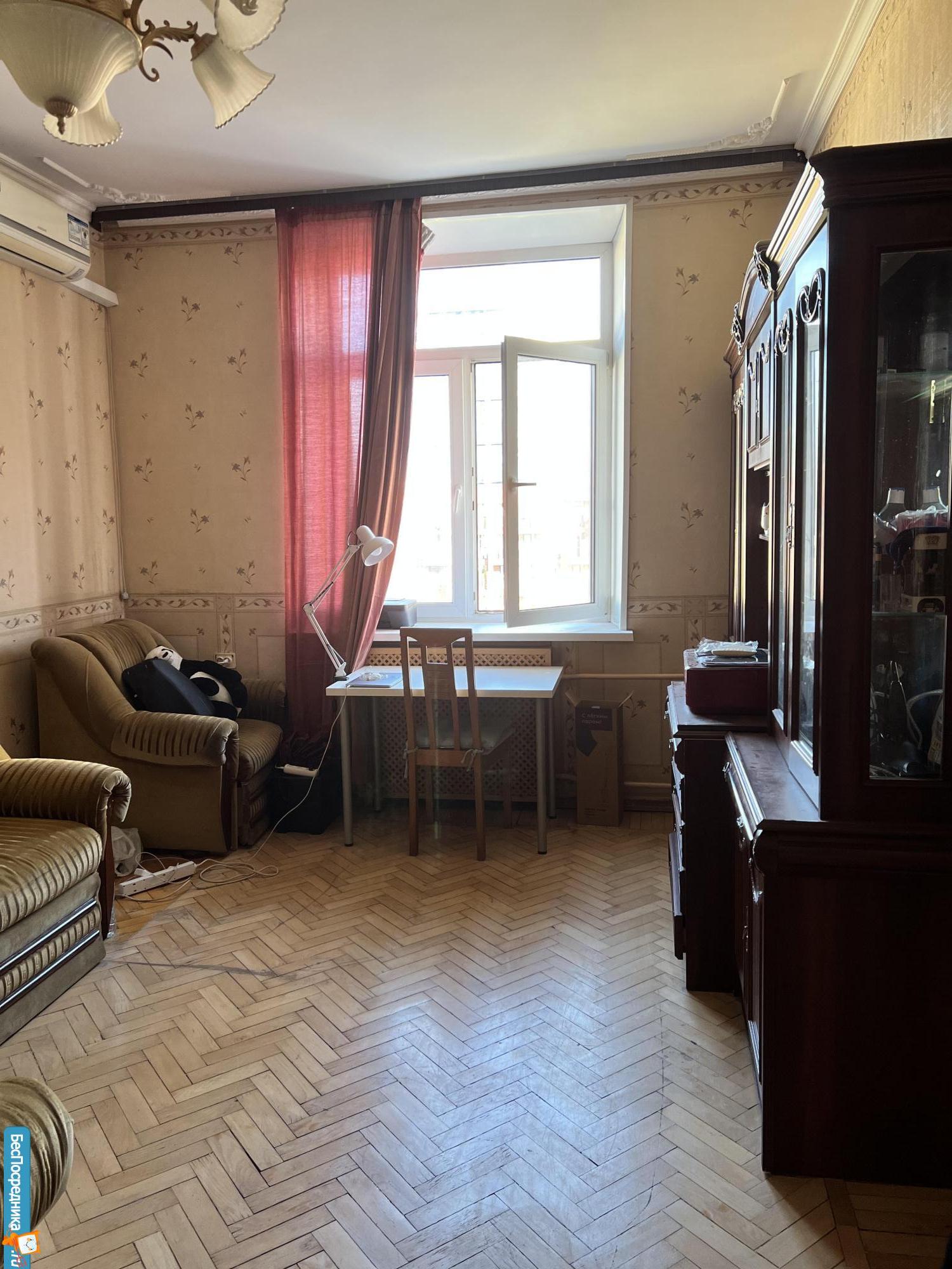Квартира — сталинская трешка с потолками 3 метра. Находится на 6 этаже, откуда раскрывается вид на сквер.