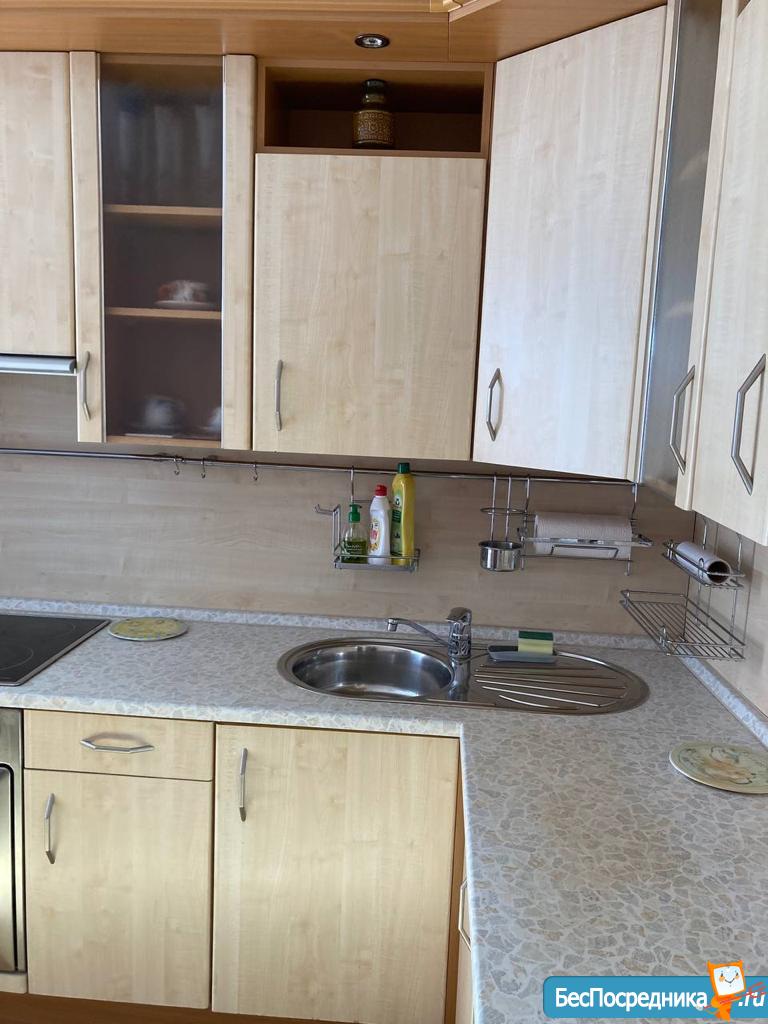 - В наличии вся необходимая мебель: вешалка для верхней одежды, полочка и шкафчик для обуви, раскладные диваны, шкафы, тумбочки, столы, стулья, светильники, кухонный гарнитур;