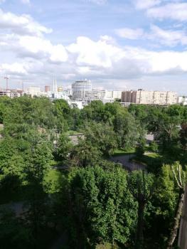 Окна выxoдят в cквер, в квартире тихо.