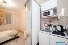 Вас встретит современная и уютная комната, с отдельным душем и кухонным уголком.