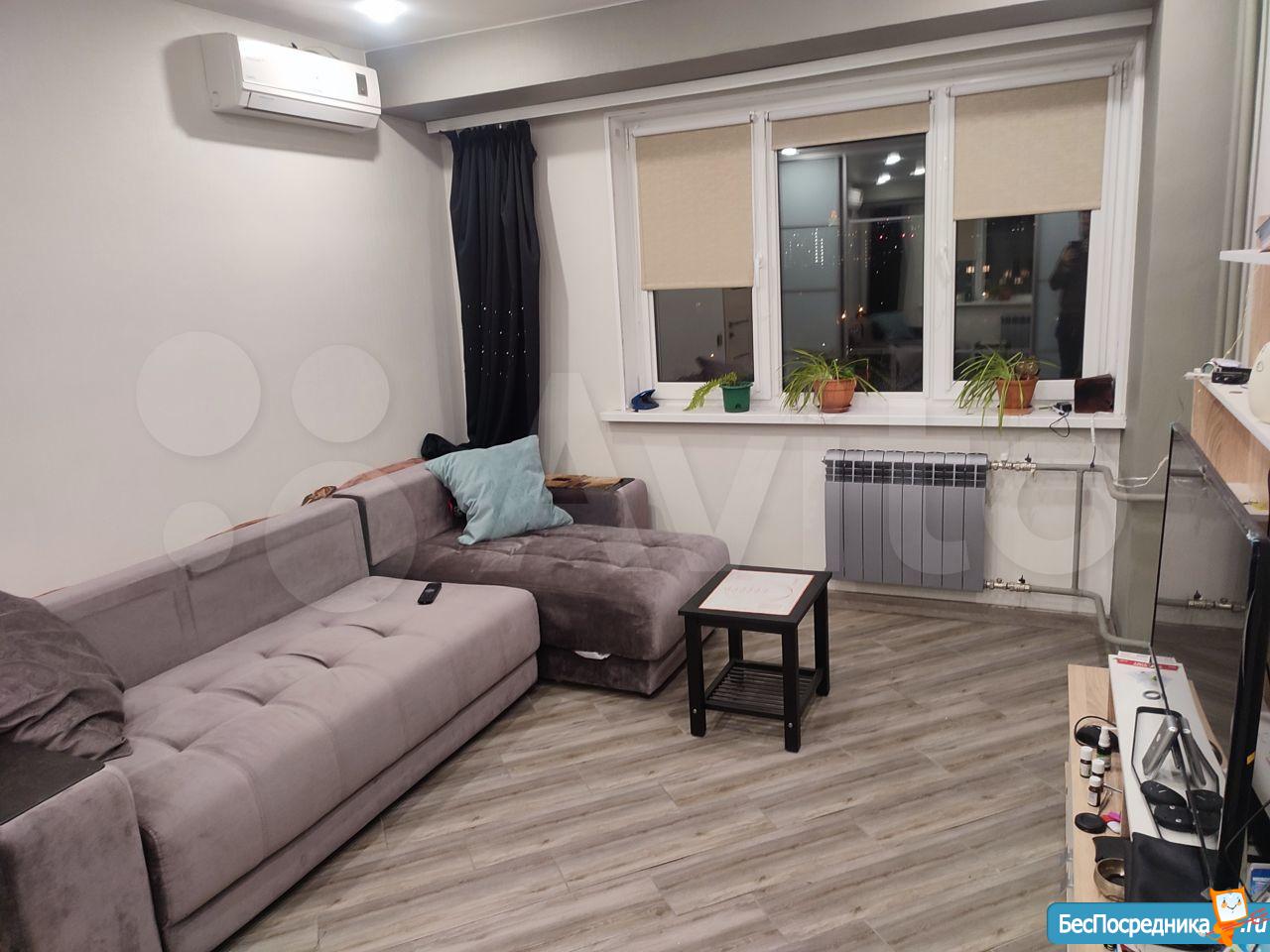 В квартире выполнен дизайнерский ремонт, что создаёт уникальный стиль и уют. Просторная кухня площадью 12 кв. м. полностью оборудована современной техникой: кондиционер, холодильник, стиральная машина. В комнатах и на кухне есть мебель, поэтому можно сразу заселиться. Санузел совмещённый, оборудован душевой кабиной. Окна квартиры выходят как на улицу, так и во двор, поэтому в доме всегда светло и тихо.