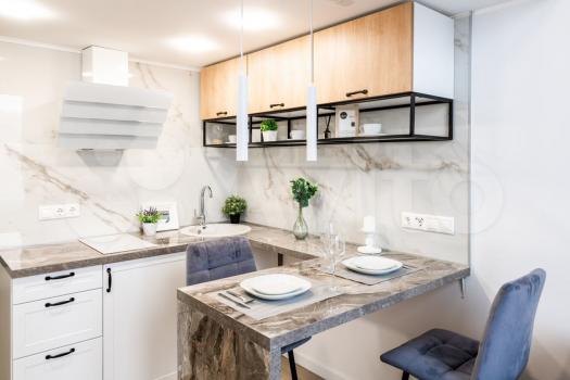 В апартаменте установлена шумоизоляция и есть вся необходимая мебель и техника: