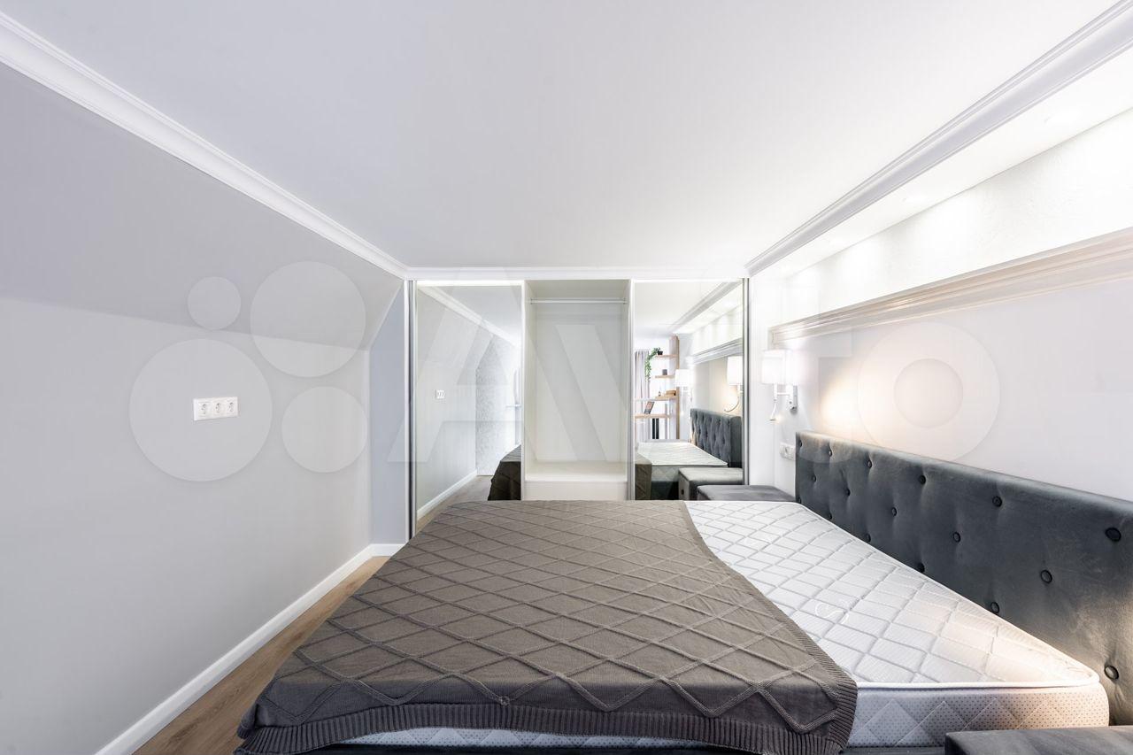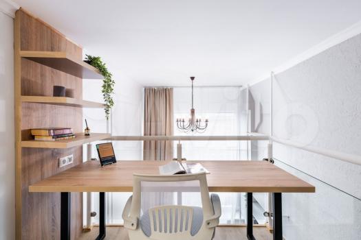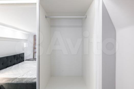 - на втором уровне: кровать с ортопедическим матрасом 160х200 см и подъемным механизмом, шкаф-купе, утюг, гладильная доска, сушилка для белья, высота потолка 190 см (по запросу оборудуем рабочее место);
