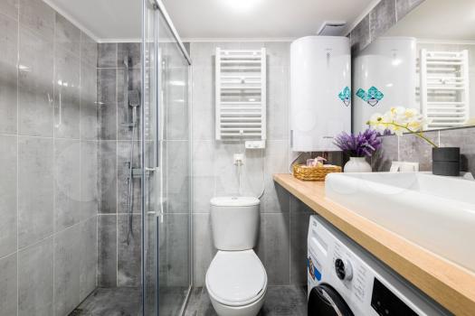 - в ванной: душевая кабина, стиральная машина, теплый пол.
