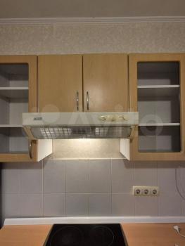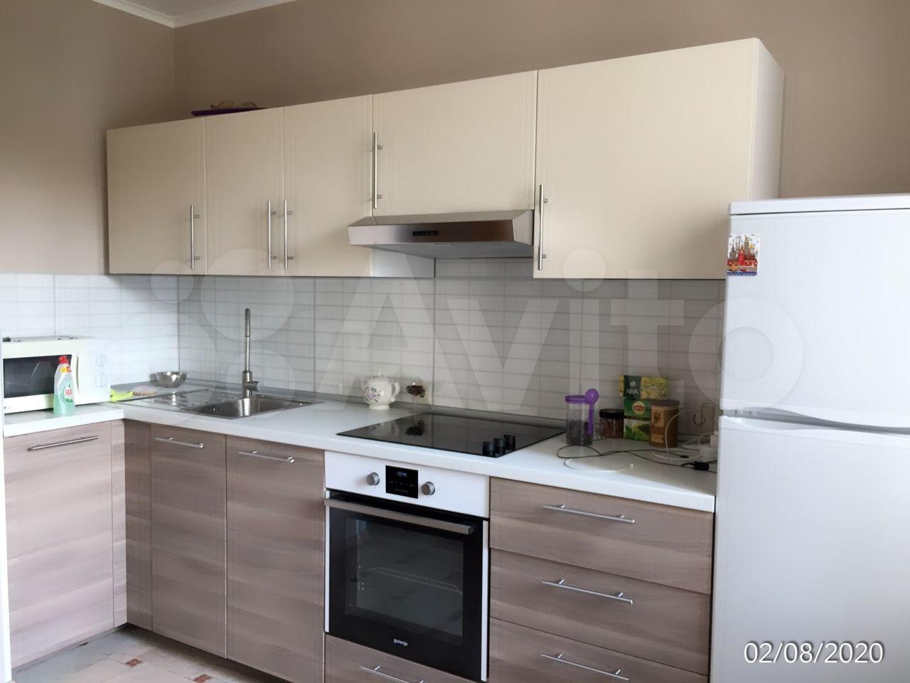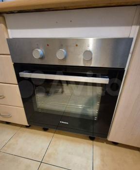 Кухня оборудована всем необходимым: плита, холодильник, вытяжка и духовой шкаф.