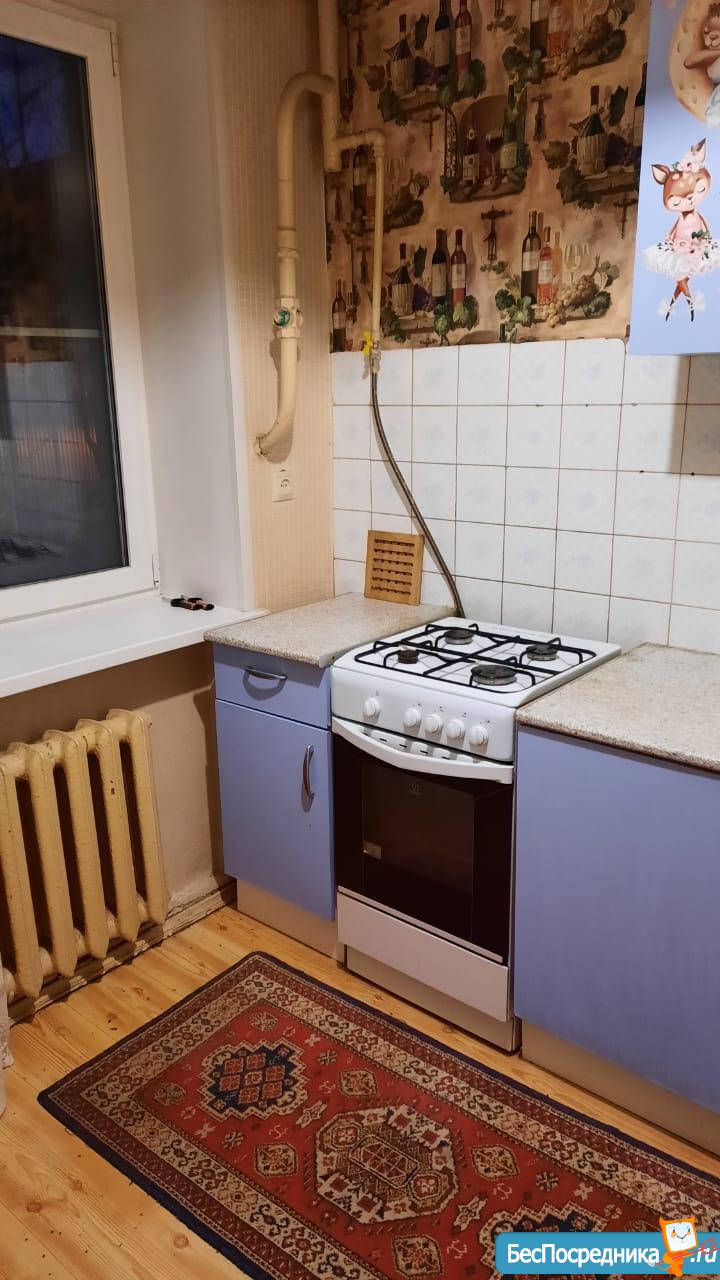 Мебель: стенка со шкафом, диван-кровать, сборная кухня с навесными ящиками, пластиковые окна, решетки на окнах.