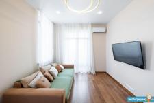 Квартира очень свежая, светлая и уютная. Ремонт делался для себя, в 2018 году и жили только мы (собственники). Есть все для комфортного проживания - большая двухспальная кровать, шкаф-купе, большая ванная комната с душевой, стиральная машинка, на кухне тоже есть вся необходимая техника, включая посудомоечную машинку. В части гостиной есть удобный раскладной диван и smart TV Samsung 55".