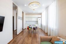 Cделан дорогой и качественный дизайнерский ремонт. В квартире стиральная машина с сушкой, посудомоечная машина Bosh, встроенная микроволновая печь с сенсорным управлением, индукционная варочная панель Bosh, духовой шкаф, встроенный холодильник Whirpool, телевизор, видеодомофон, тёплый пол в сан.узле. В обеих комнатах установлена система приточной вентиляции и очистки воздуха бризер Tion 3S с управлением через приложение. Отдельная вместительная гардеробная комната.
