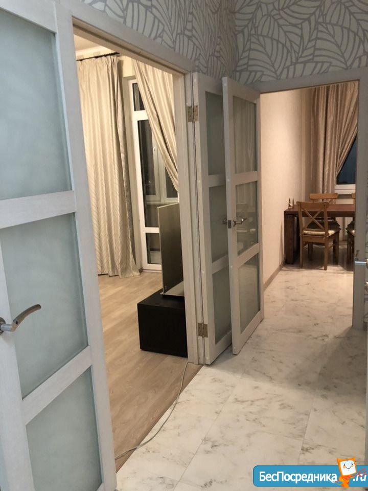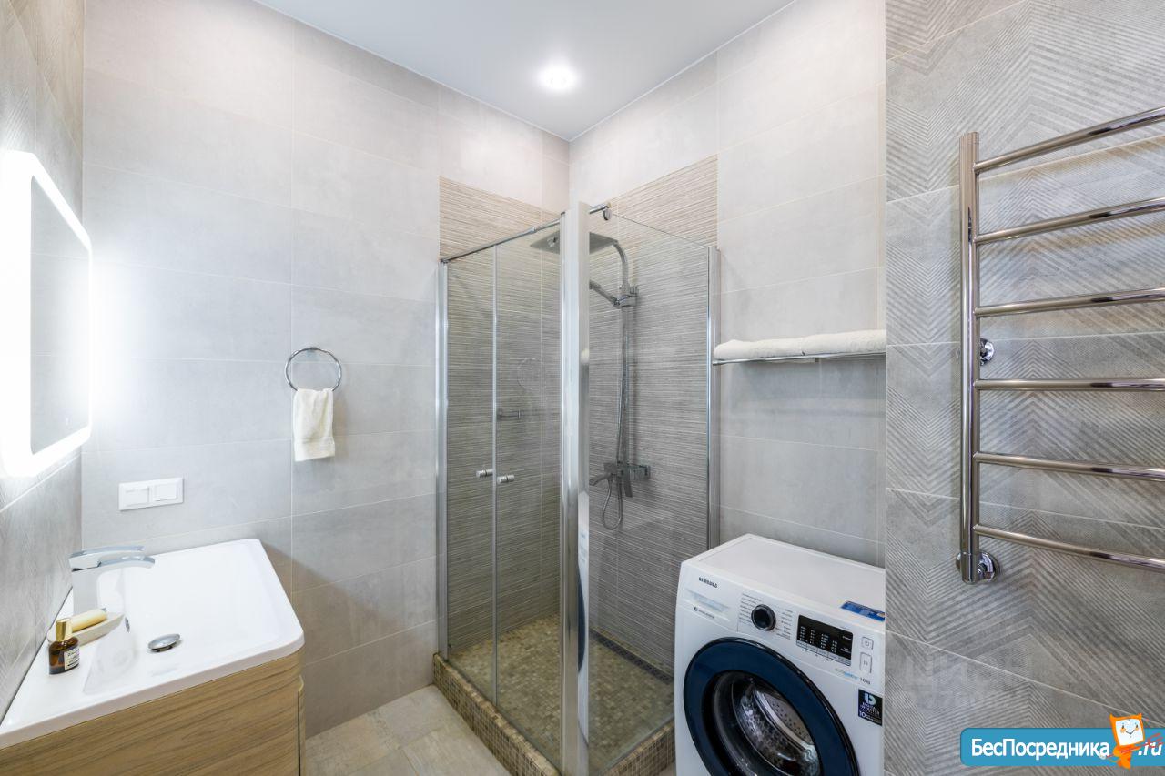 Cделан дорогой и качественный дизайнерский ремонт. В квартире стиральная машина с сушкой, посудомоечная машина Bosh, встроенная микроволновая печь с сенсорным управлением, индукционная варочная панель Bosh, духовой шкаф, встроенный холодильник Whirpool, телевизор, тёплый пол в сан.узле. В обеих комнатах установлена система приточной вентиляции и очистки воздуха бризер Tion 3S с управлением через приложение. Отдельная вместительная гардеробная комната.