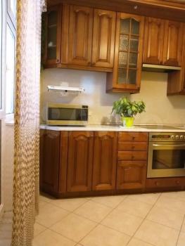 Межкомнатные двери покрытые натуральным шпоном дуба. Кухня (6 метров) из массива дуба (фасады, карниз), кухонный диван и стол (элементы массива дуба). Металлическая входная дверь (внутр. массив дуба).