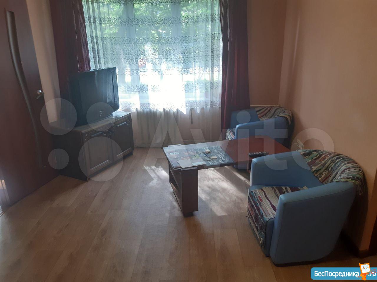 Двухкомнатная квартира со свежим ремонтом, новой техникой( холодильник, микроволновка, стиральная машина, газовая плита) , с застекленным балконом и окнами во двор сдаётся на длительный срок семье.