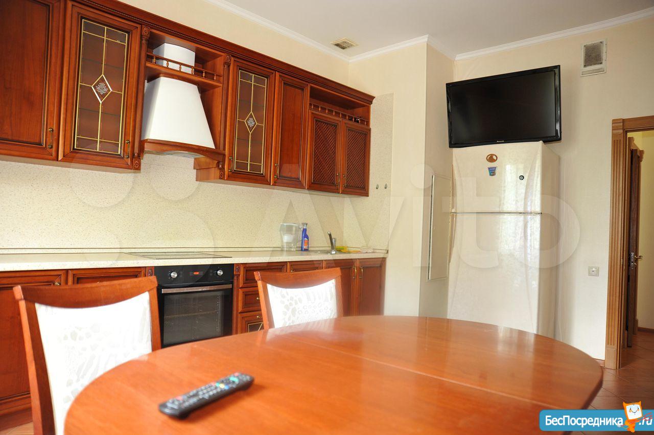 В просторной квартире есть всё необходимое для проживания: в коридоре вместительный встроенный шкаф; в комнате отдельная гардеробная, двуспальный гарнитур с ортопедическим матрасом (спальное место 1,6*2), кондиционер, утюг, телевизор, шкаф; на кухне гарнитур из массива, встроенная техника варочная электрическая панель, духовой шкаф, посудомоечная машина, чайник, холодильник, обеденный стол и стулья; в ванной качественная сантехника, встроенный шкаф и стиральная машина