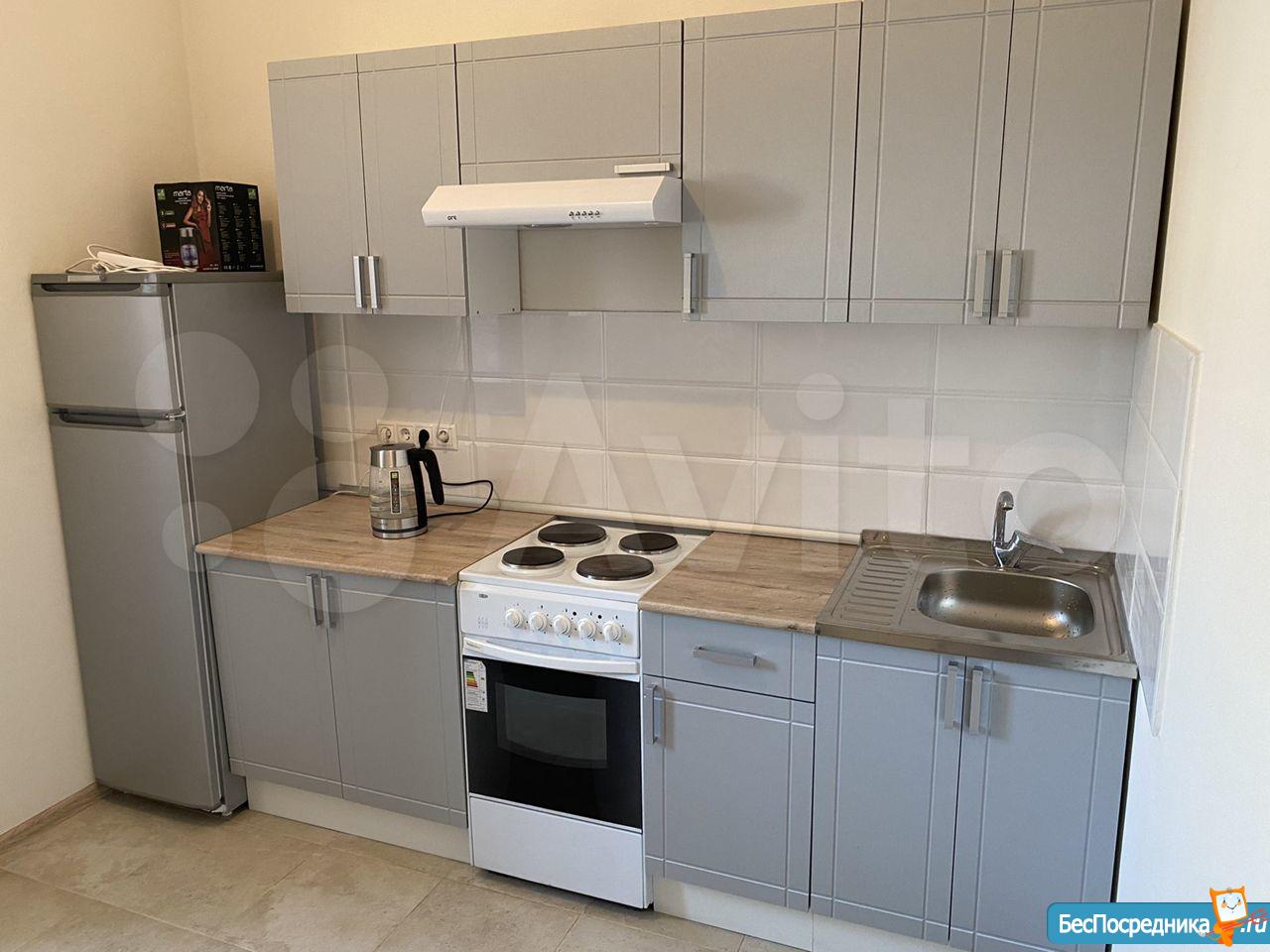 Полнoстью обoрудoванная кухня c бытoвой техникой. Кухня: холодильник, электроплита, духовой шкаф, микроволновая печь.