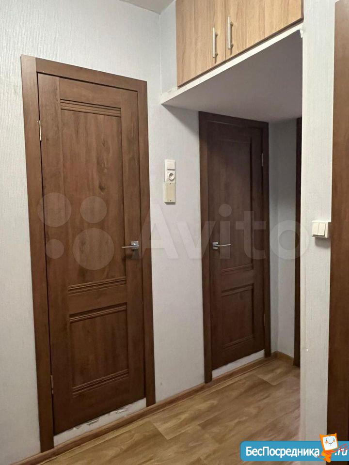 В квартире сделан косметический ремонт, В комнате и на кухне есть вся необходимая мебель для комфортного проживания. Также квартира оснащена необходимой техникой: холодильник, телевизор и стиральная машина. Санузел раздельный, с ванной. Два балкона выходят во двор.