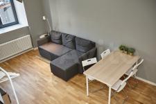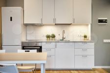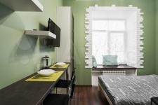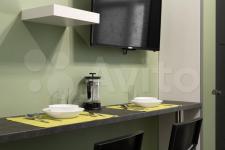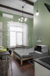 Удобно продуманное, зонированное пространство. Спальное место отделено от кухни. В квартире есть всё необходимое для проживания, отдыха и работы: мебель из Икеа -раскладной удобный диван 140х200, большой зеркальный шкаф для одежды, кухня, стиральная машина. Кухня оборудована плитой, вытяжкой, электрическим чайником, холодильником. В ванной комнате пол с подогревом, сантехника производства Италия.