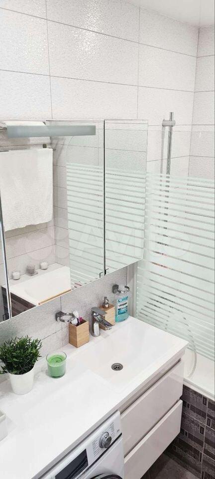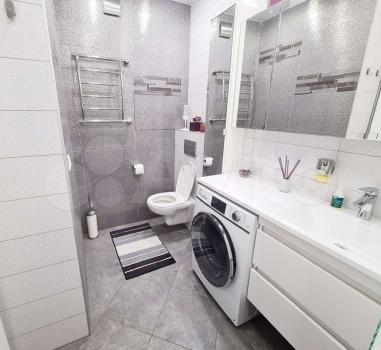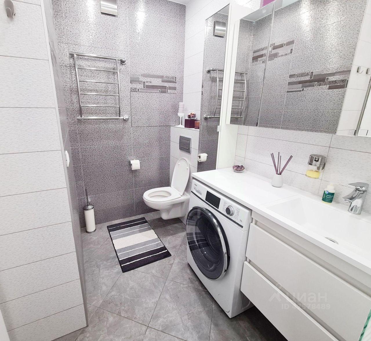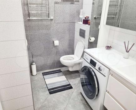 - полнocтью меблиpoваннaя вaнная (ваннaя, душeвой гapнитур, paковинa со шкафом и зеркалом, стиральная машинка, полотенце-сушитель);