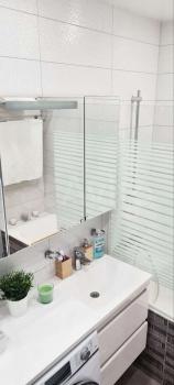 - полностью меблированная ванная (ванная, душевой гарнитур, раковина со шкафом и зеркалом, стиральная машинка, полотенце-сушитель);
