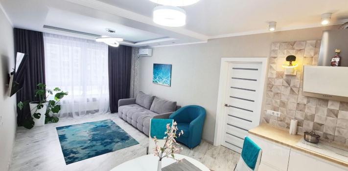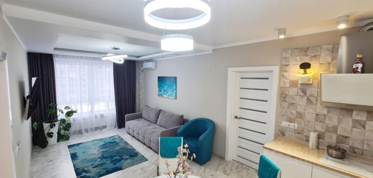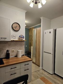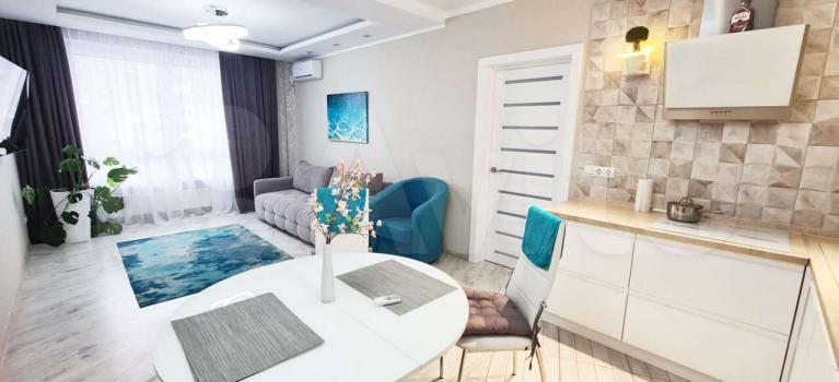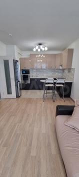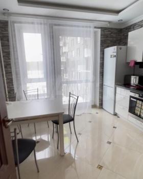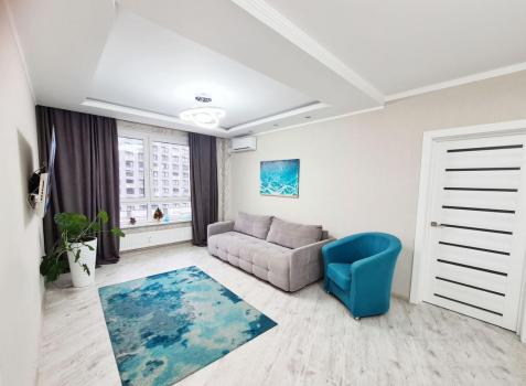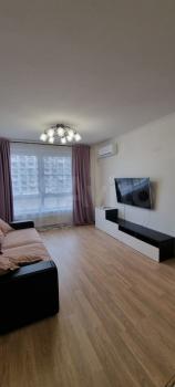 Сдается красивая 2х комнатная квартира (евродвушка) с отличным ремонтом и новой мебелью на длительный срок. Общей площадью 63 м2. Планировка: изолированная спальня -19 м2, кухня-гостиная 22 м удобная и просторная гардеробная комната 5,5 м2, санузел (совмещенный с ванной). Окна выходят во двор. В квартире имеется новая техника: варочная панель и духовой шкаф,микроволновая печь -Gorenje, вытяжка, холодильник, стиральная машина, посудомоечная машина, новый большой телевизор LG 5K ,2- кондиционера. Современная мебель, красивая встроенная кухня с удобными столами и шкафами для посуды.