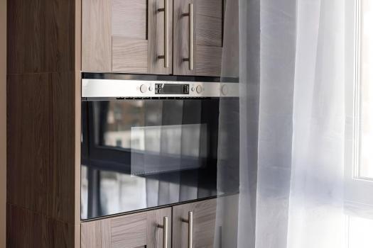 - полностью меблированная кухня (плита с духовым шкафом, вытяжка, холодильник, микроволновая печь, чайник, обеденный стол с двумя стульями);